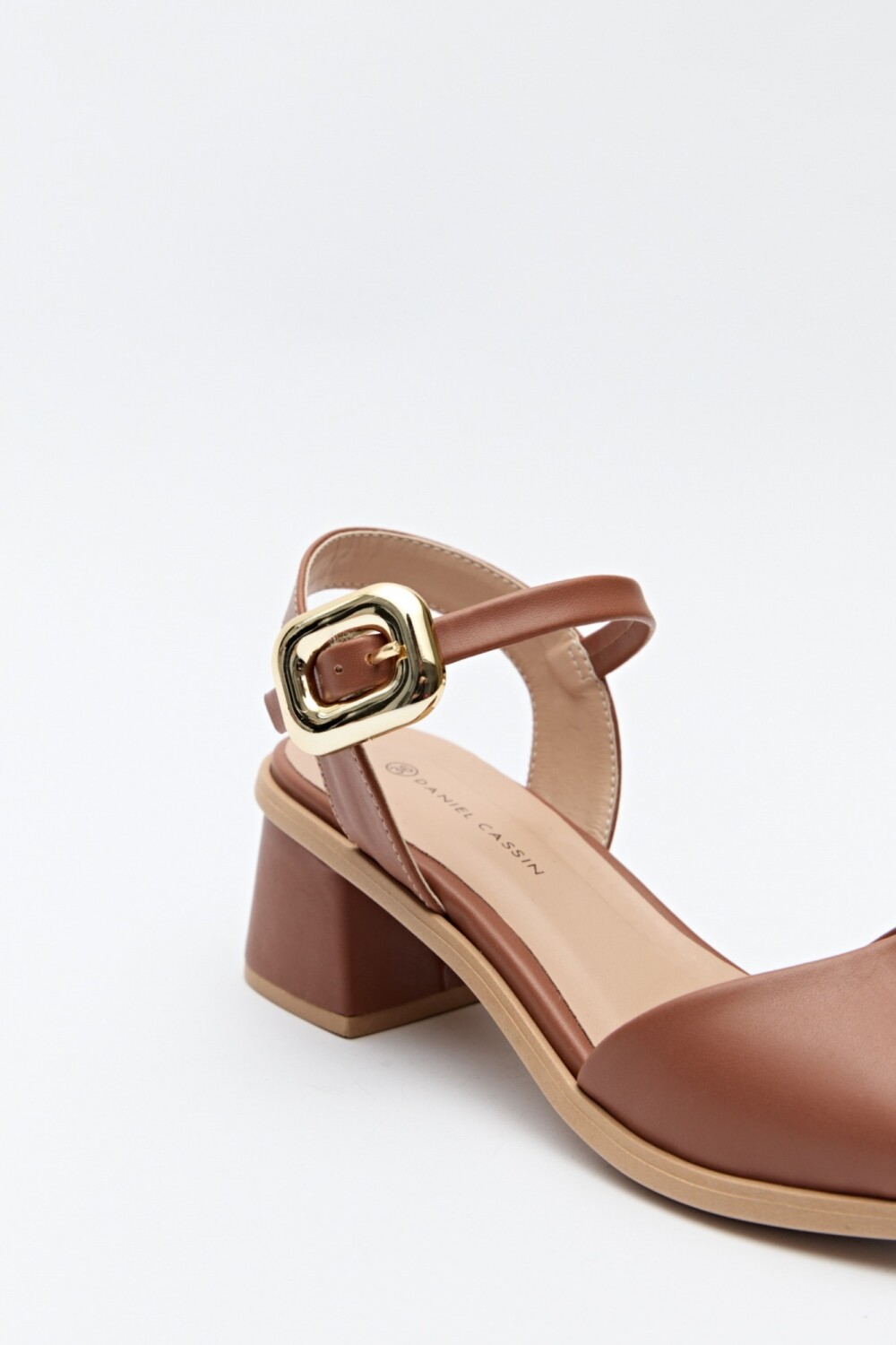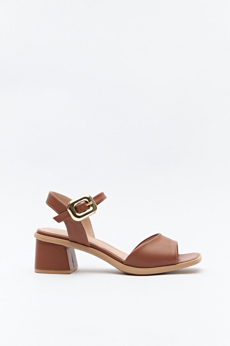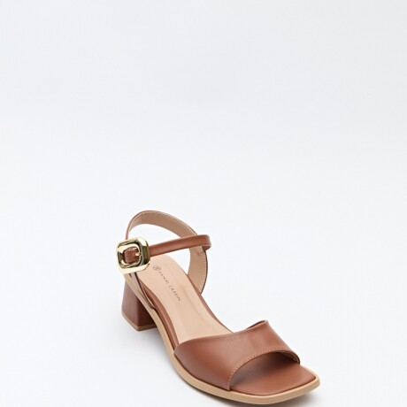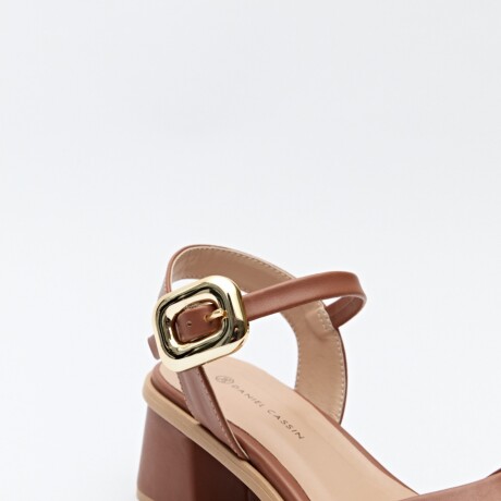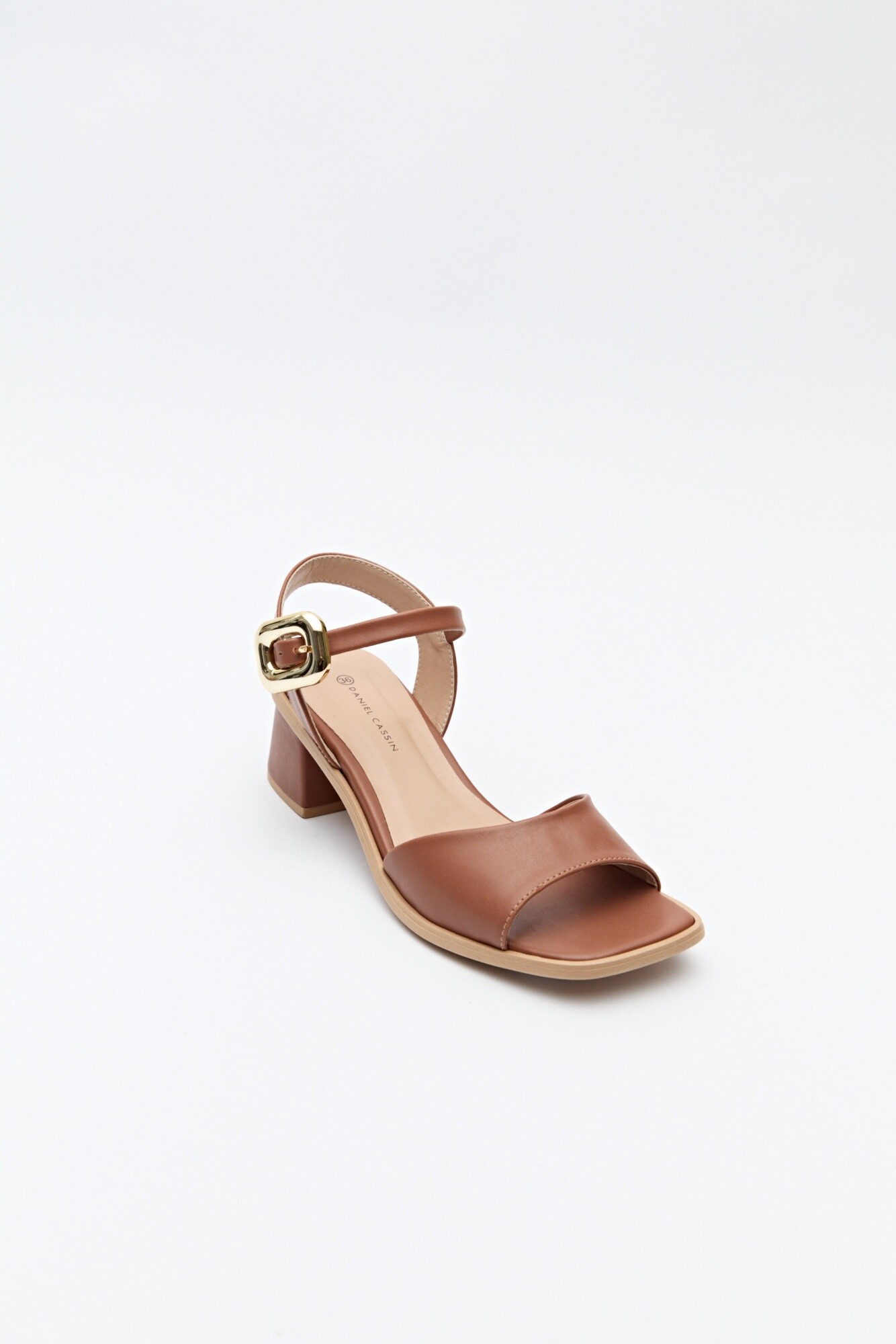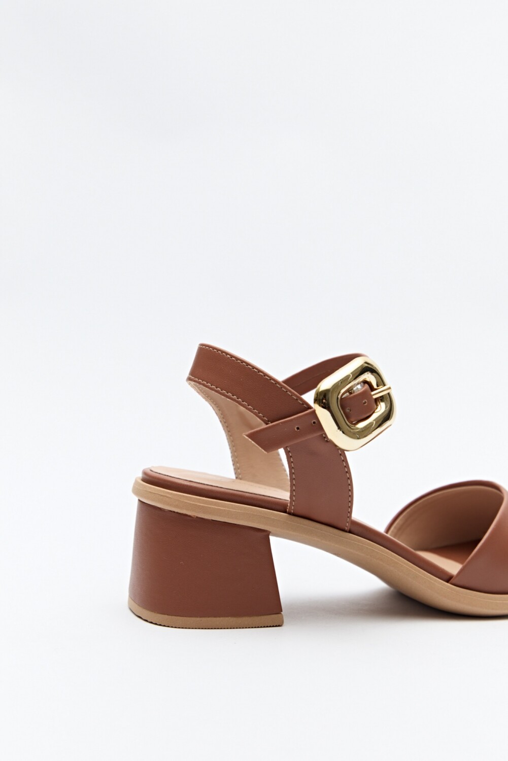Sandalia con pulsera al tobillo y hebilla metálica cuadrada que realza el diseño. Presenta una capellada ancha que cubre el empeine y taco medio ancho, ideal para lograr equilibrio entre confort y estilo. Perfecta para elevar looks cotidianos o de noche con un toque moderno.