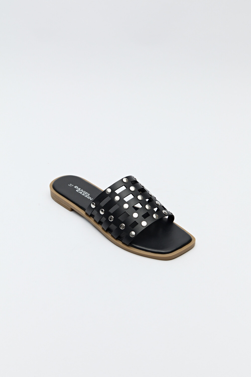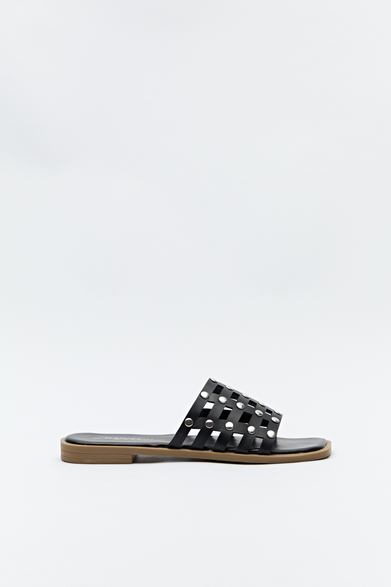 Sandalia baja de diseño entrelazado con apliques metálicos que aportan textura y un aire contemporáneo. Su capellada trenzada le da un toque artesanal, mientras que las tachas suman carácter y un guiño rockero. Perfectas para complementar looks relajados con una cuota de estilo y actitud.