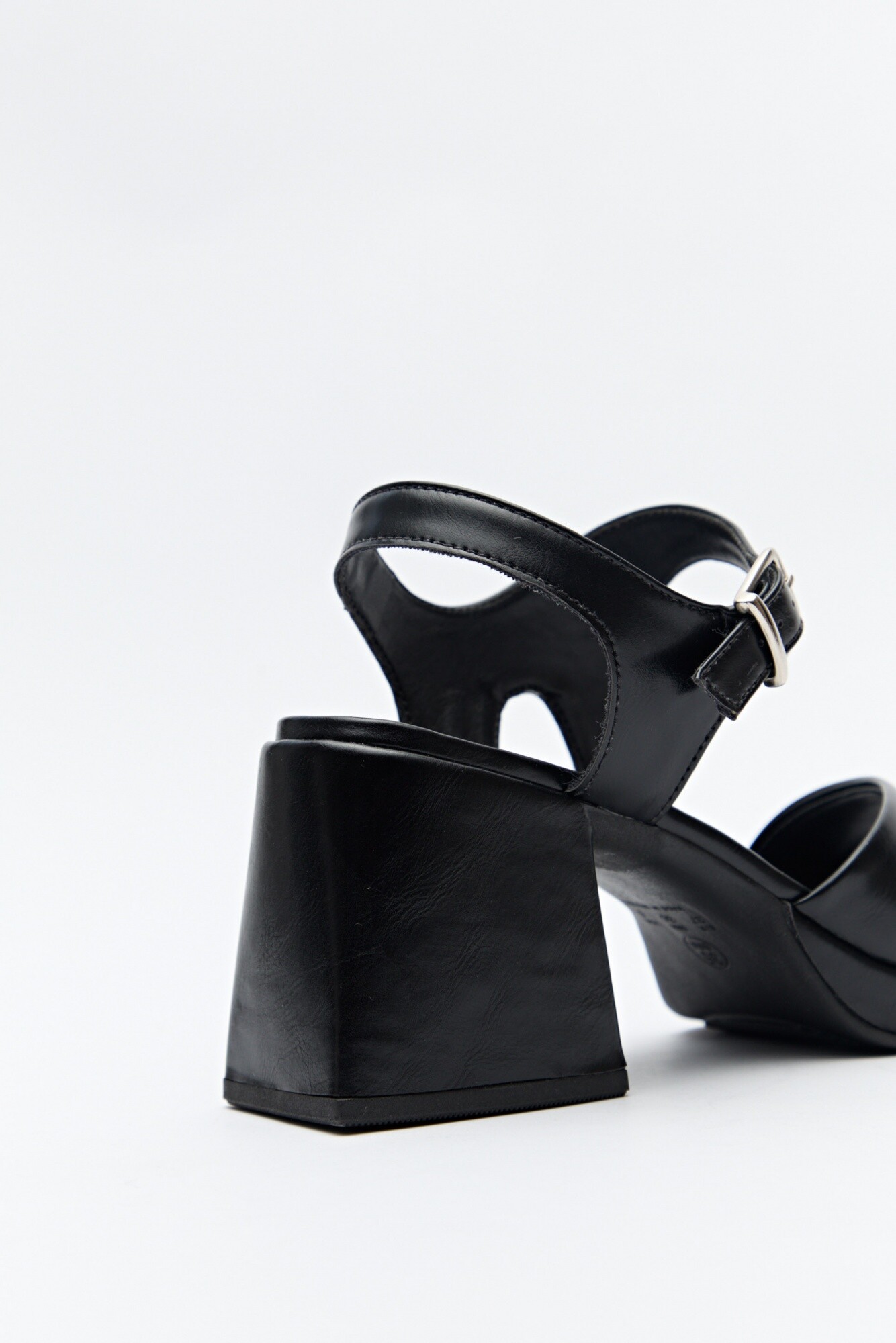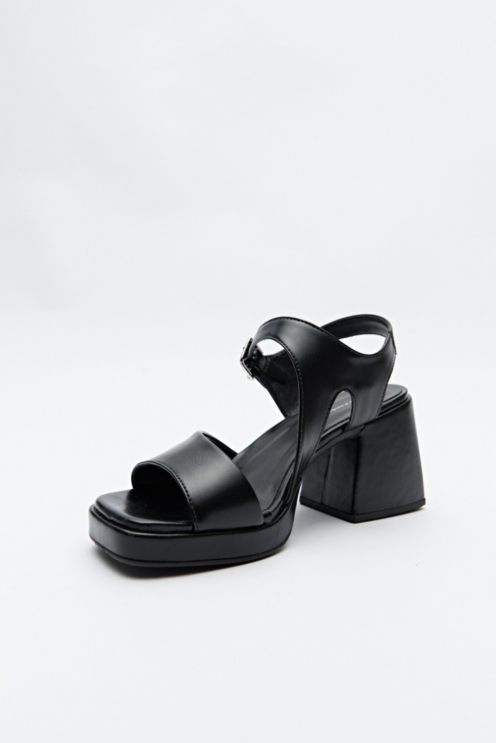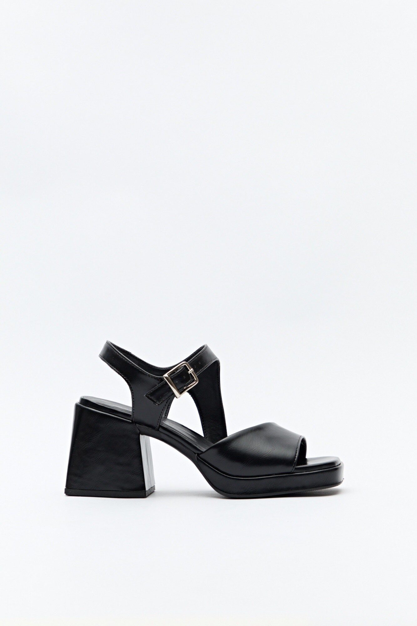 Sandalias con plataforma fina y taco ancho forrado, que ofrece altura con total estabilidad. Incorporan pulsera con hebilla metálica y capellada ancha que asegura el pie. Un modelo ideal para looks de noche o eventos donde el brillo se vuelve protagonista.