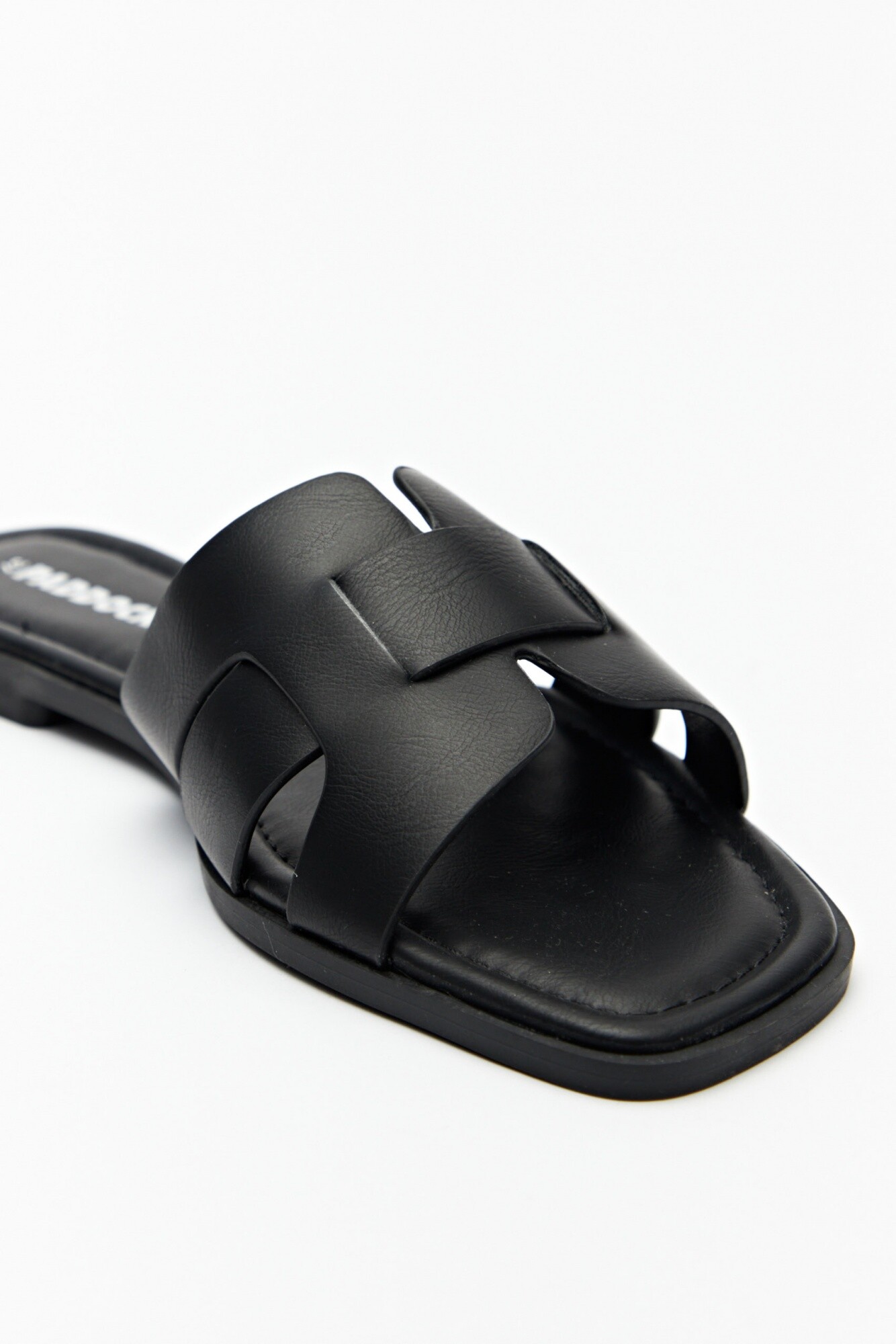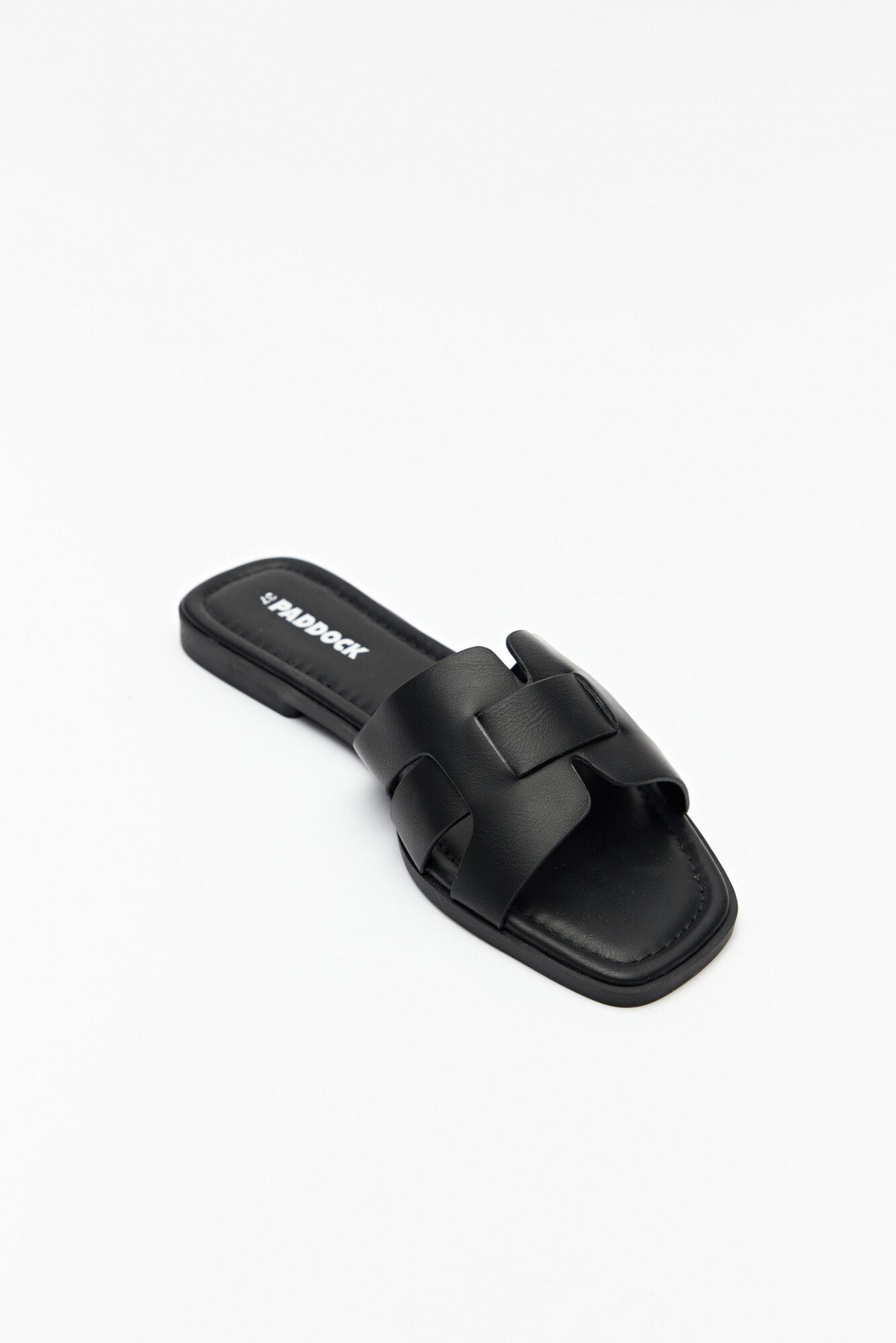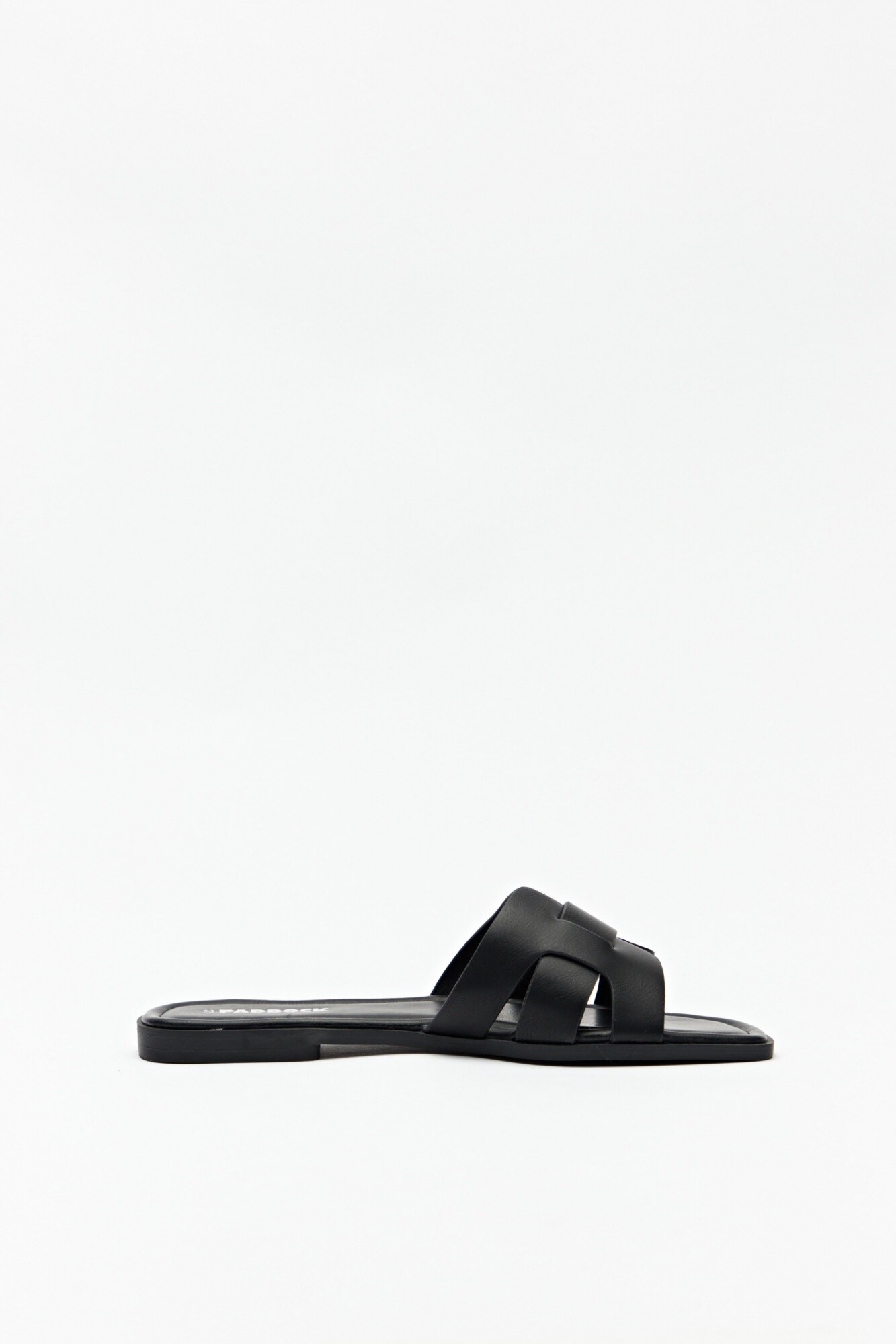 20 Sandalias bajas abiertas en símil cuero con capellada entrelazada.