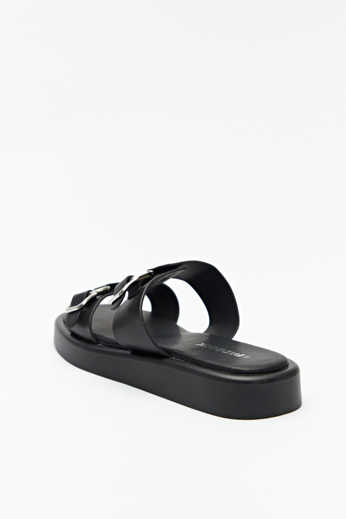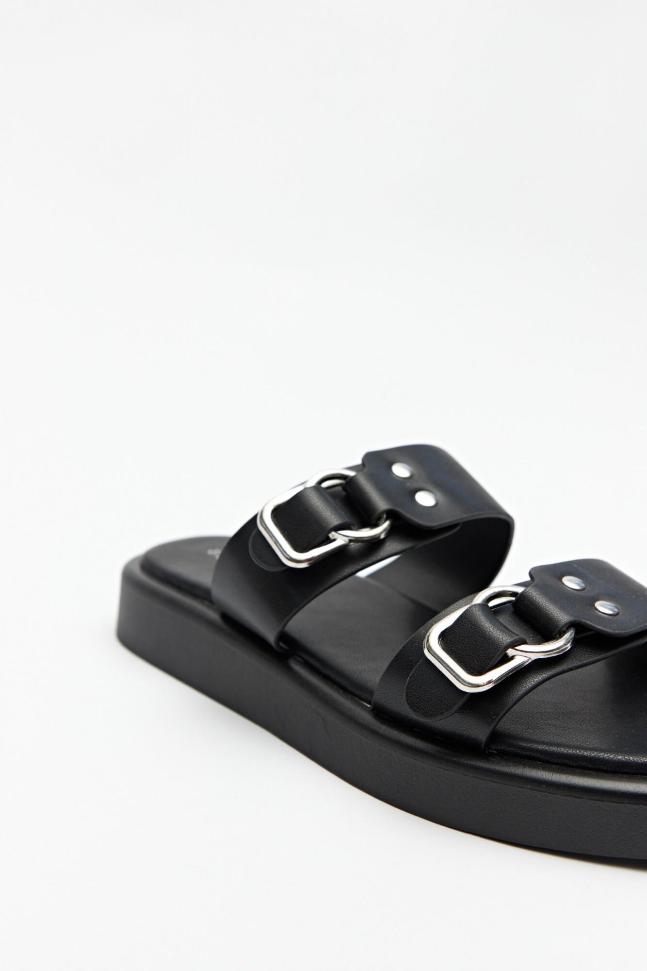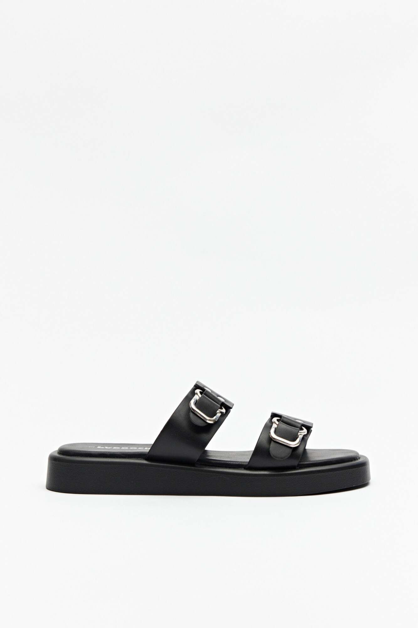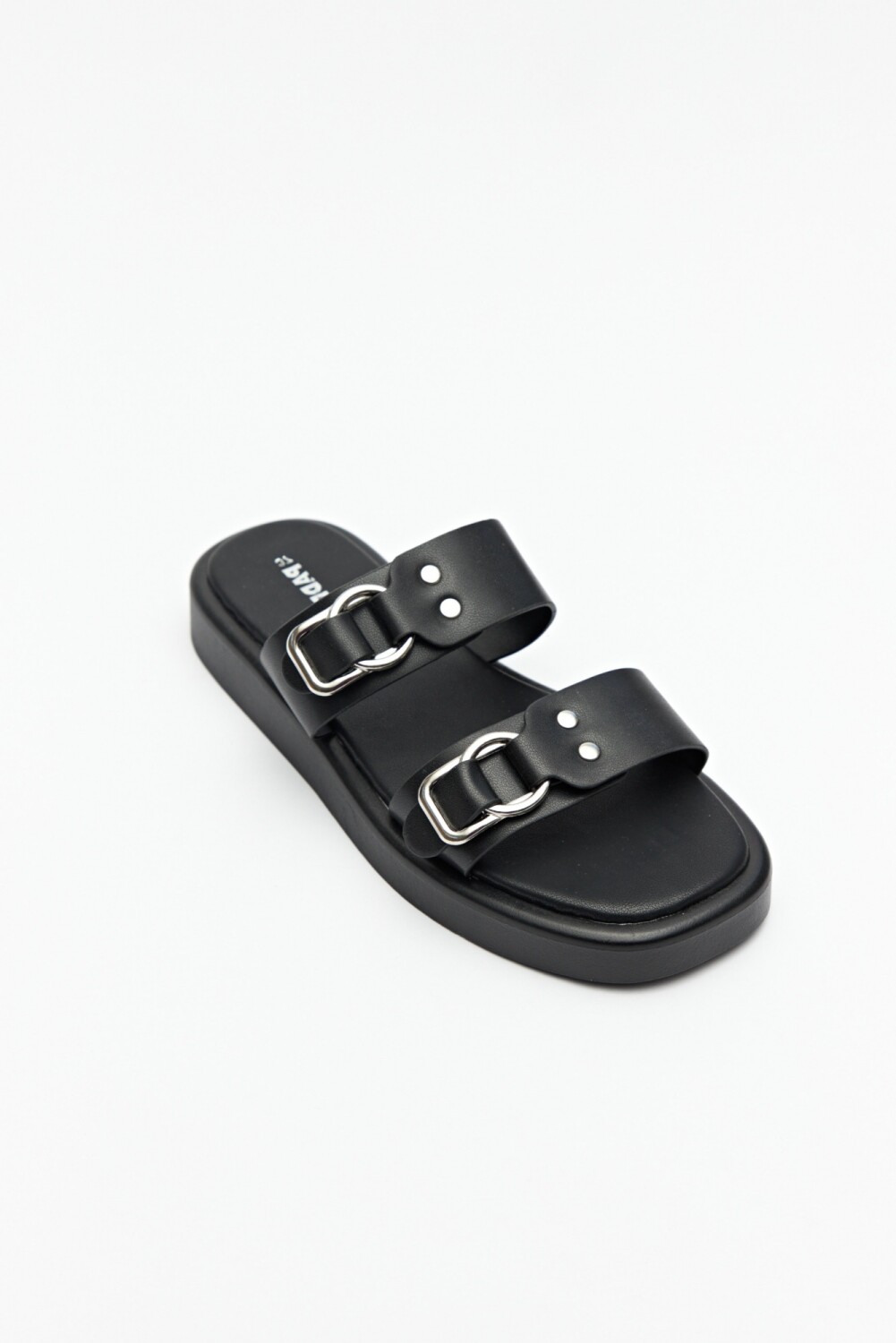 Sandalias de plataforma de 2,5cm de alto. Tiras en símil cuero con detalles metálicos.