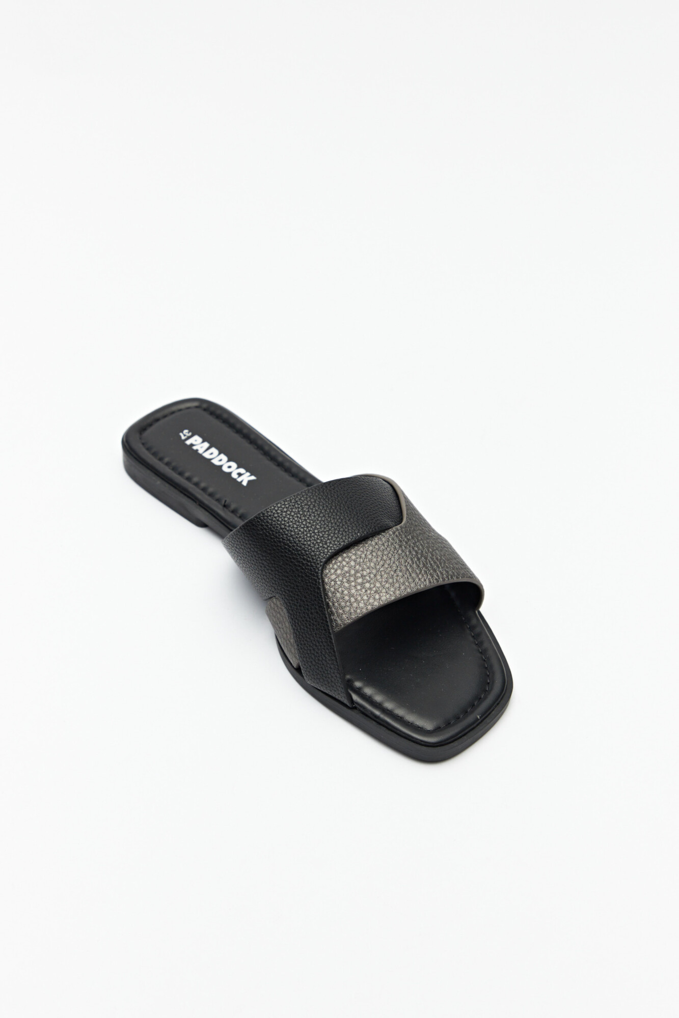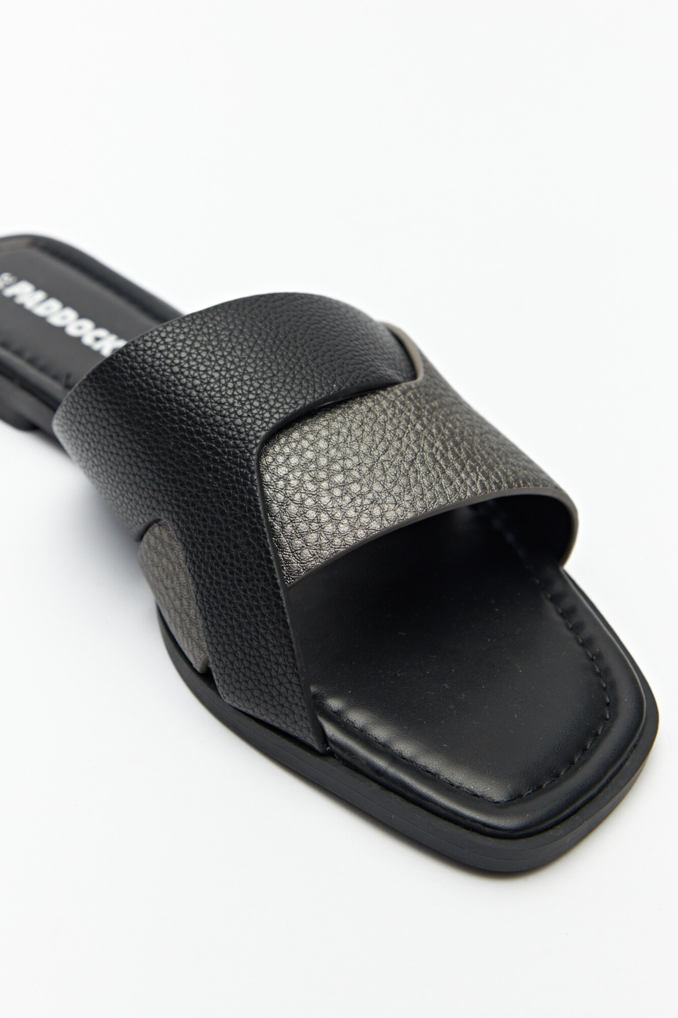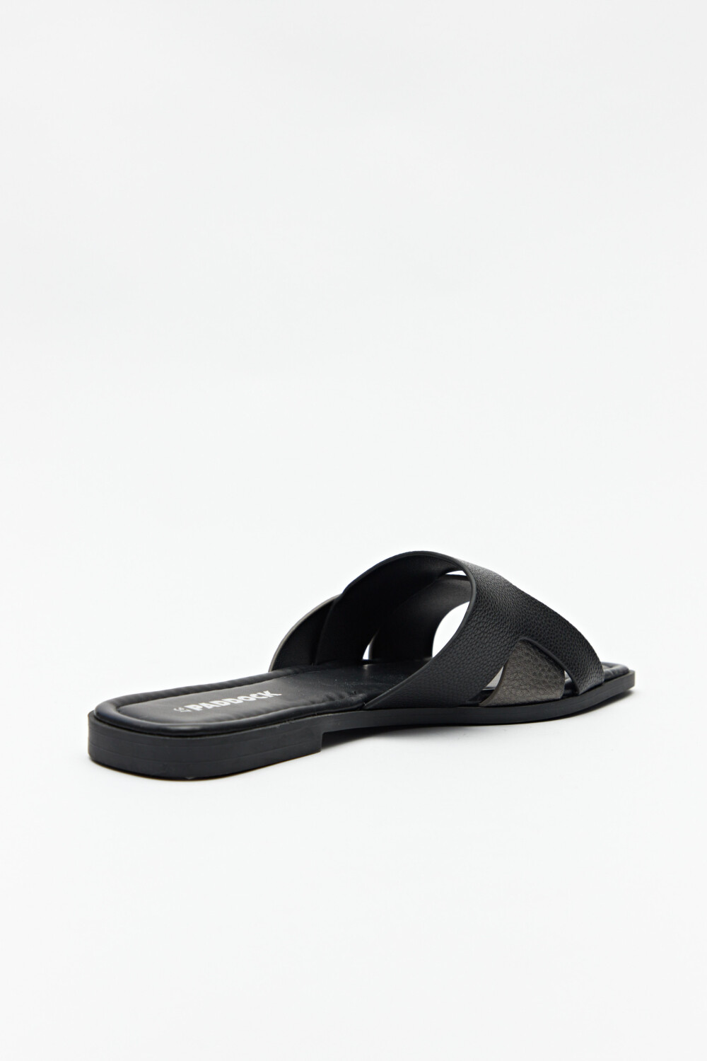 20 Sandalias bajas abiertas en símil cuero con capellada texturizada y entrelazada.