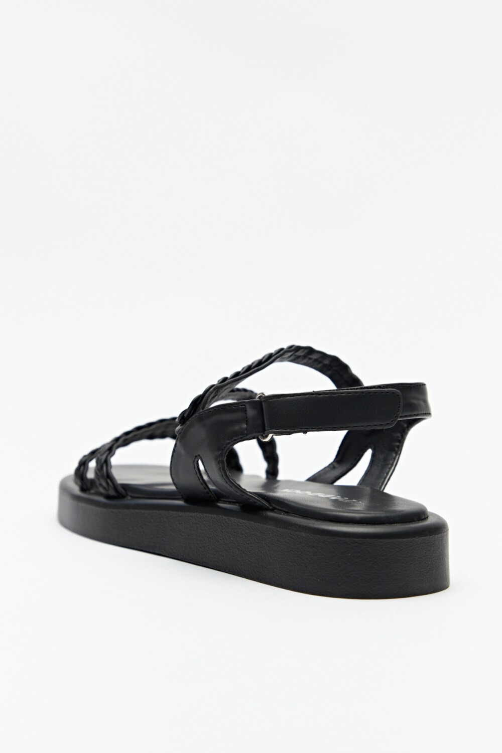 Sandalias en símil cuero con agarre ajustable de velcro en el talón. Sus tiras son trenzadas, lo que aporta textura e identidad a tu look! Su plataforma es de 3cm de alto.