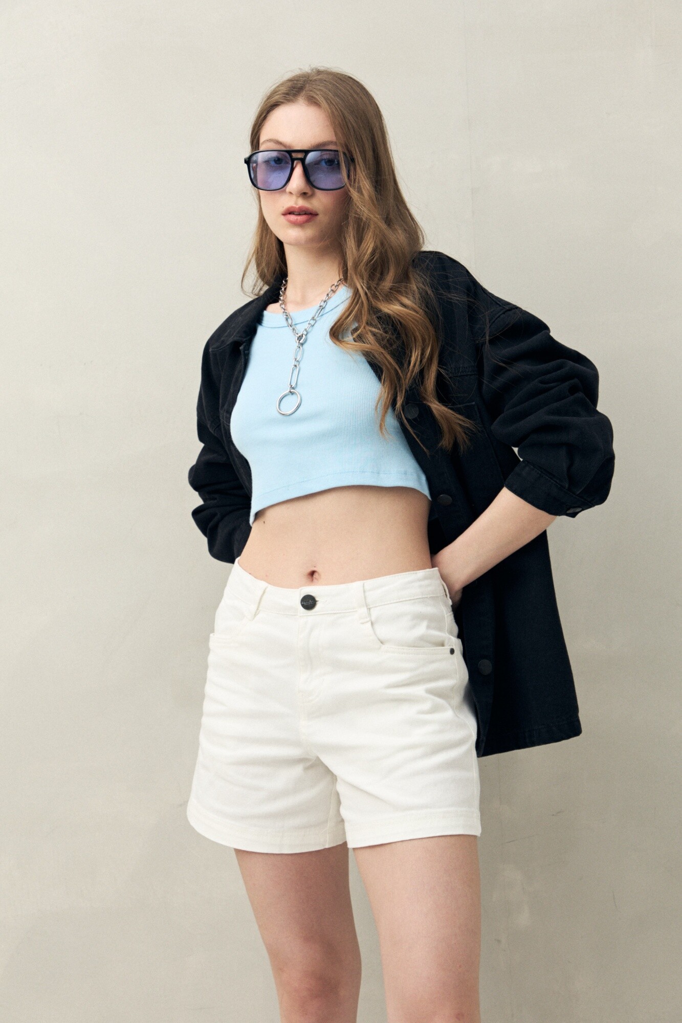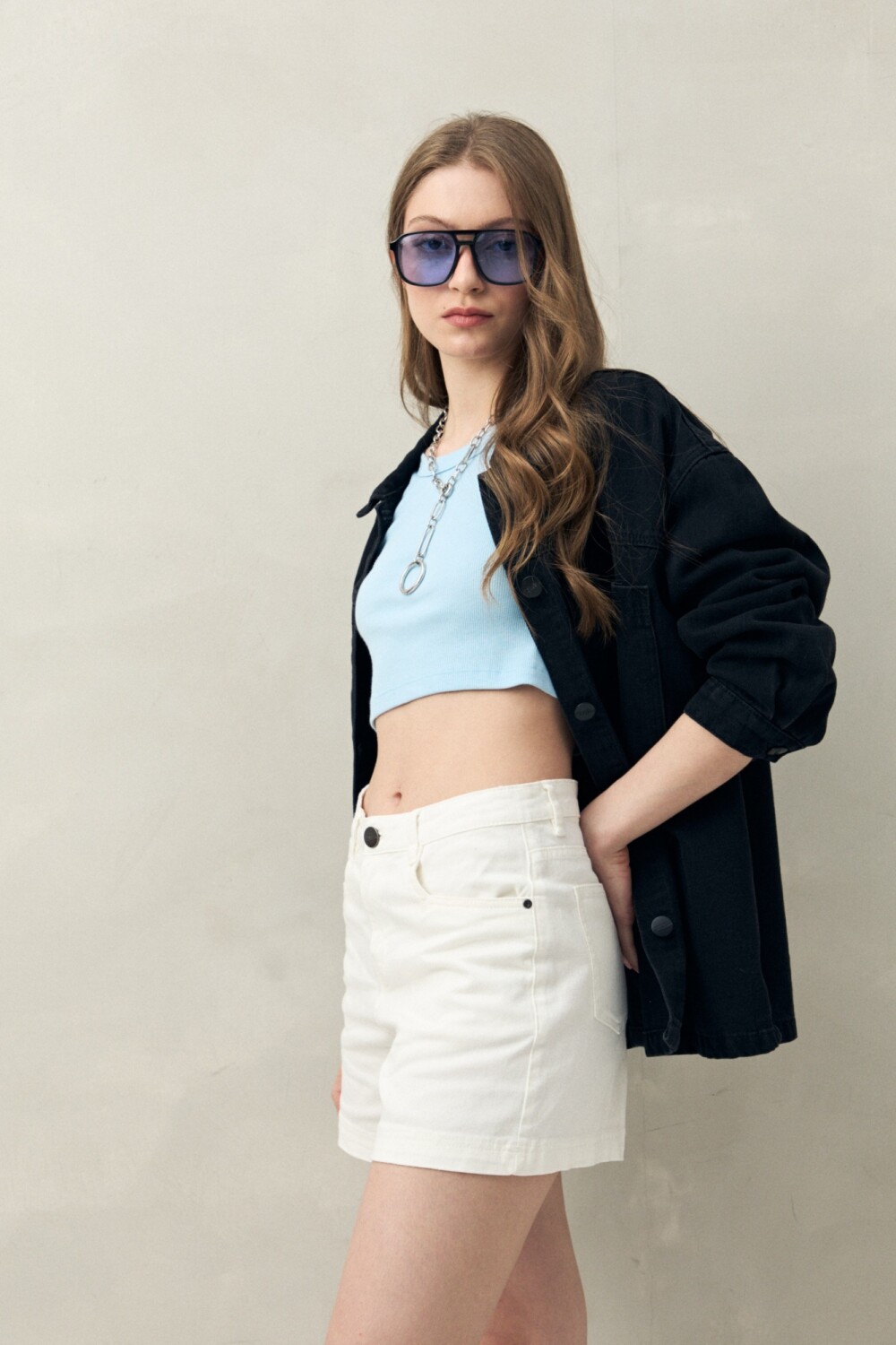 20 Short de algodón con diseño clásico de cinco bolsillos y terminación limpia. Su tiro medio y estructura ligeramente rígida lo hacen un básico atemporal para los días cálidos. Ideal para combinar con blusas ligeras o camisas relajadas y lograr un look casual sin esfuerzo.