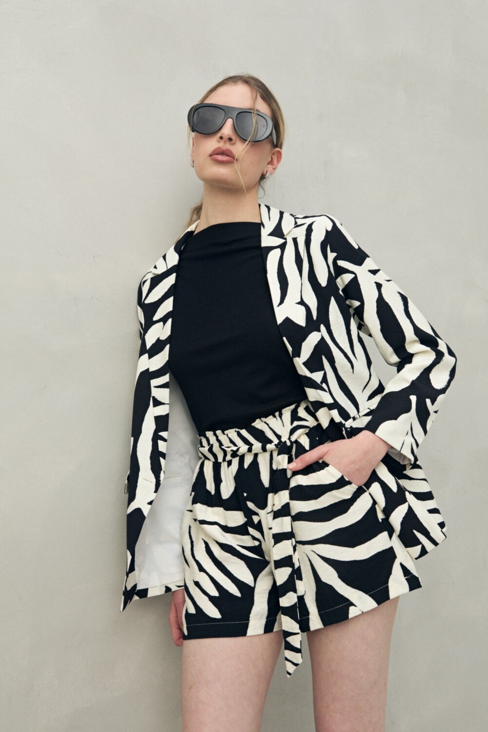 Short con estampa orgánica y cinto incorporado que permite ajustar la cintura para un calce favorecedor. Su diseño con pretina elastizada combina comodidad y estilo, ideal para un look en tendencia tanto de día como de noche. Perfecto para llevar con su blazer a juego o con tops lisos para un contraste moderno.