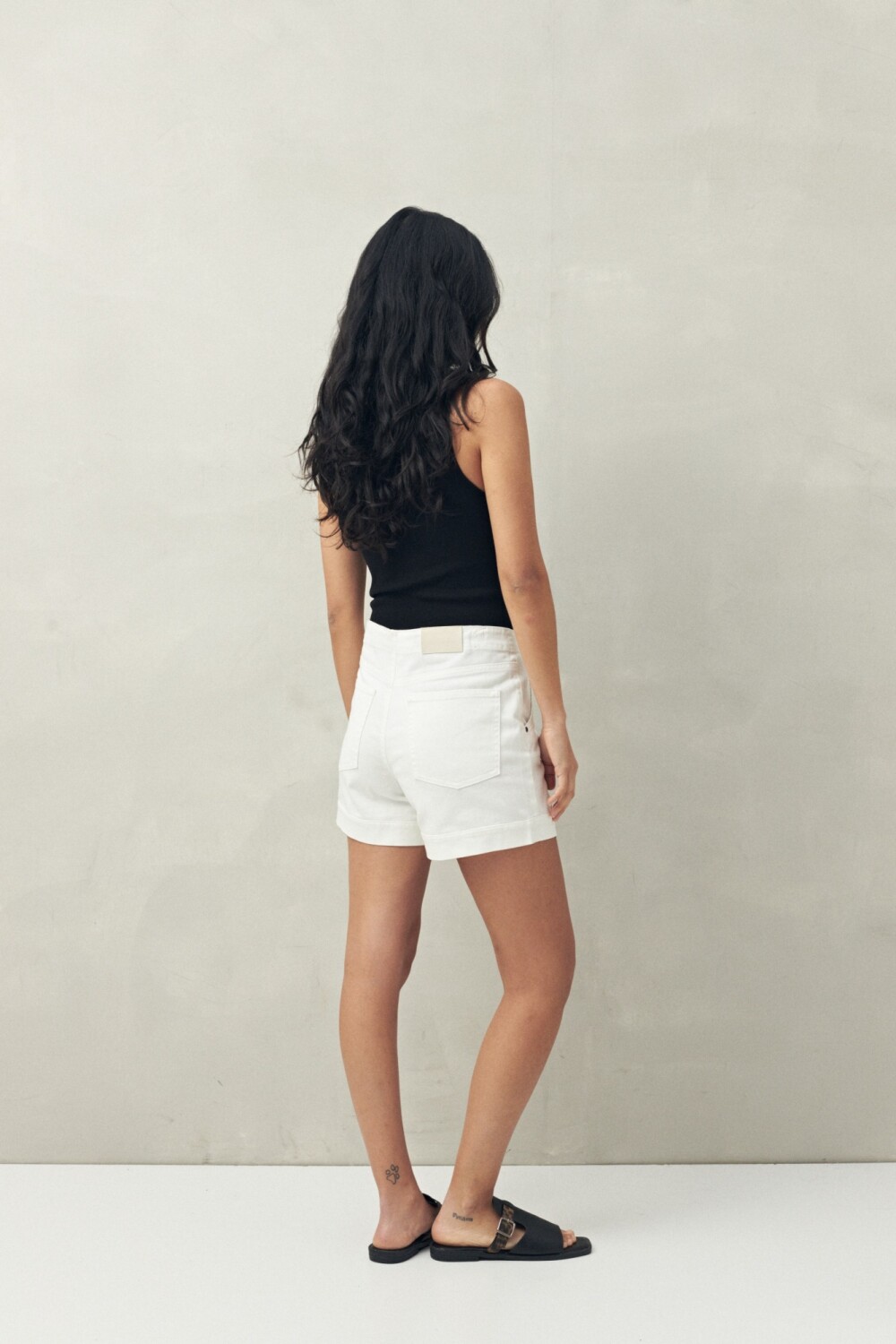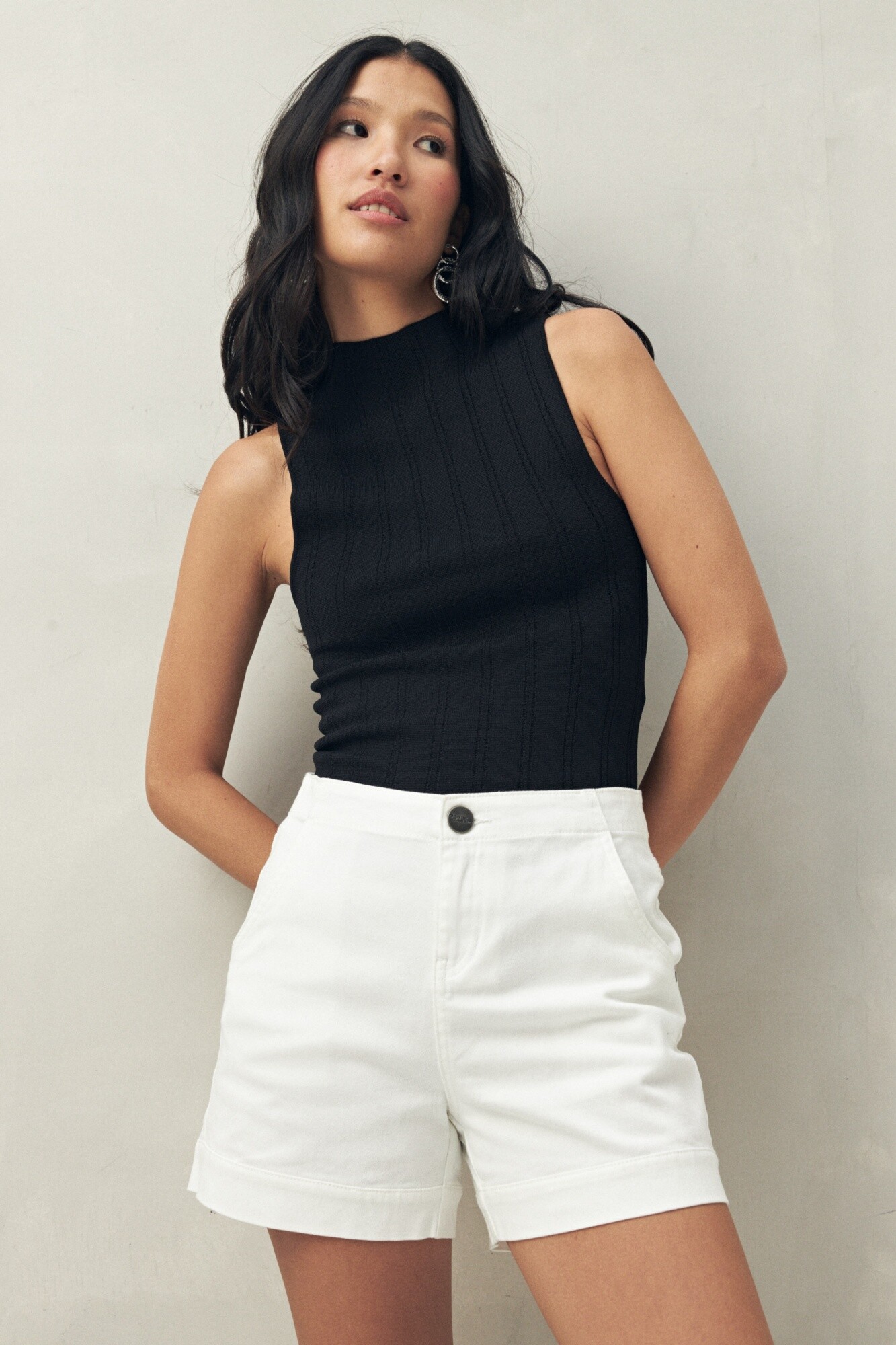 20 Short de tiro medio y calce al cuerpo, con dobladillos para un acabado moderno. Gracias a su toque de elastano, ofrece comodidad y libertad de movimiento sin perder estructura. Una prenda versátil para looks casuales, perfecta para combinar con sweaters ligeros, camisas o remeras básicas.