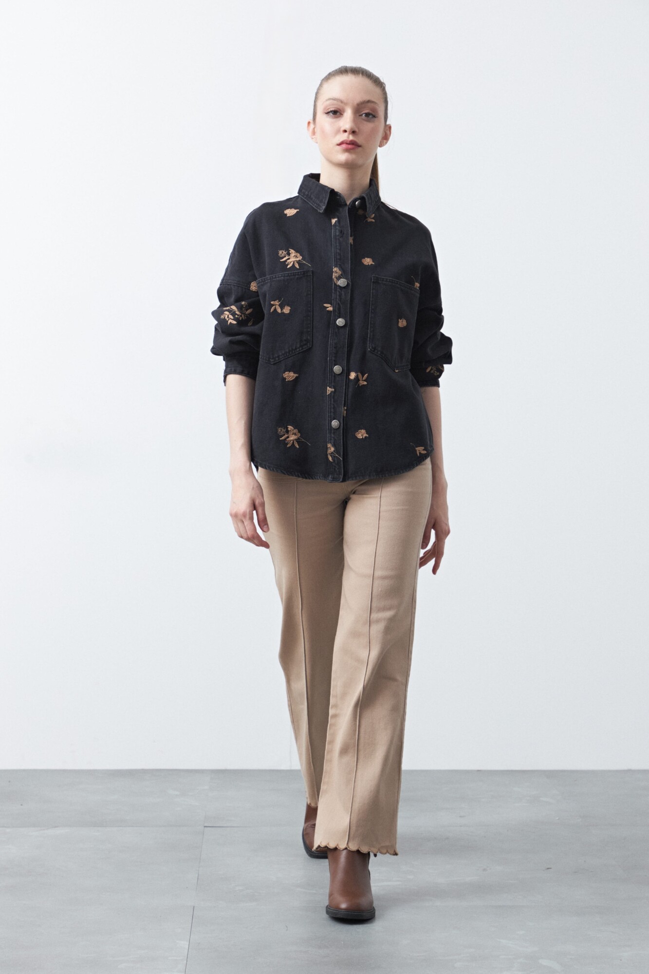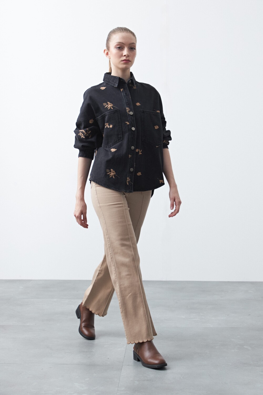 Camisa de denim con bordado floral que combina actitud urbana con un trabajo de detalle sutil. Su estructura aporta presencia, mientras que el bordado suma un diferencial delicado que eleva la prenda y la vuelve versátil para usar tanto abierta como cerrada. El diseño con bolsillos frontales y botones metálicos refuerza su impronta moderna, ideal para sumar carácter a looks relajados o más armados.