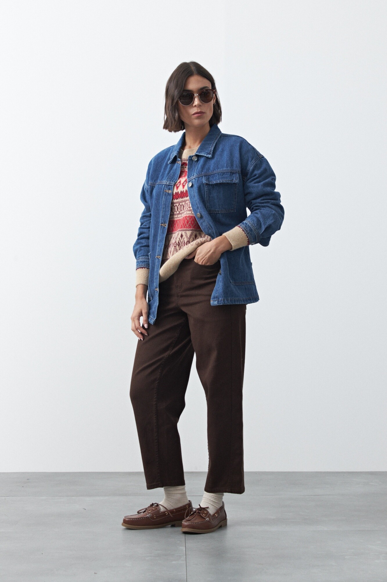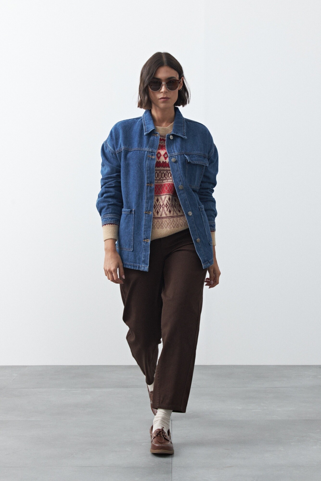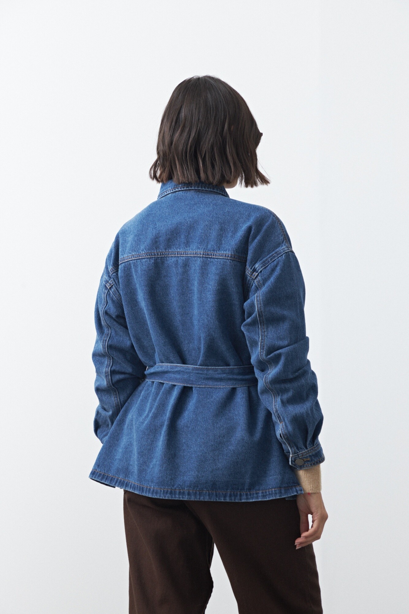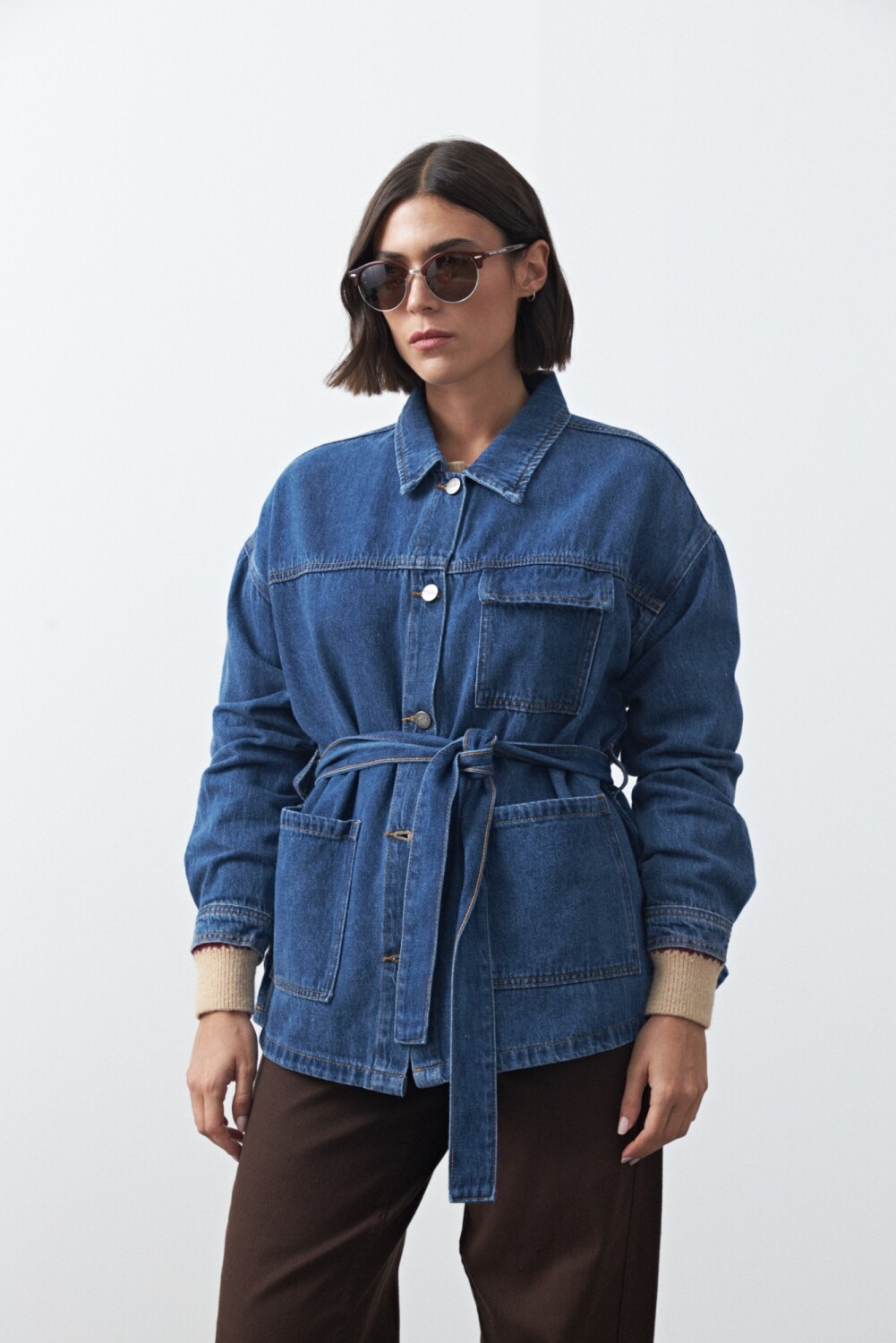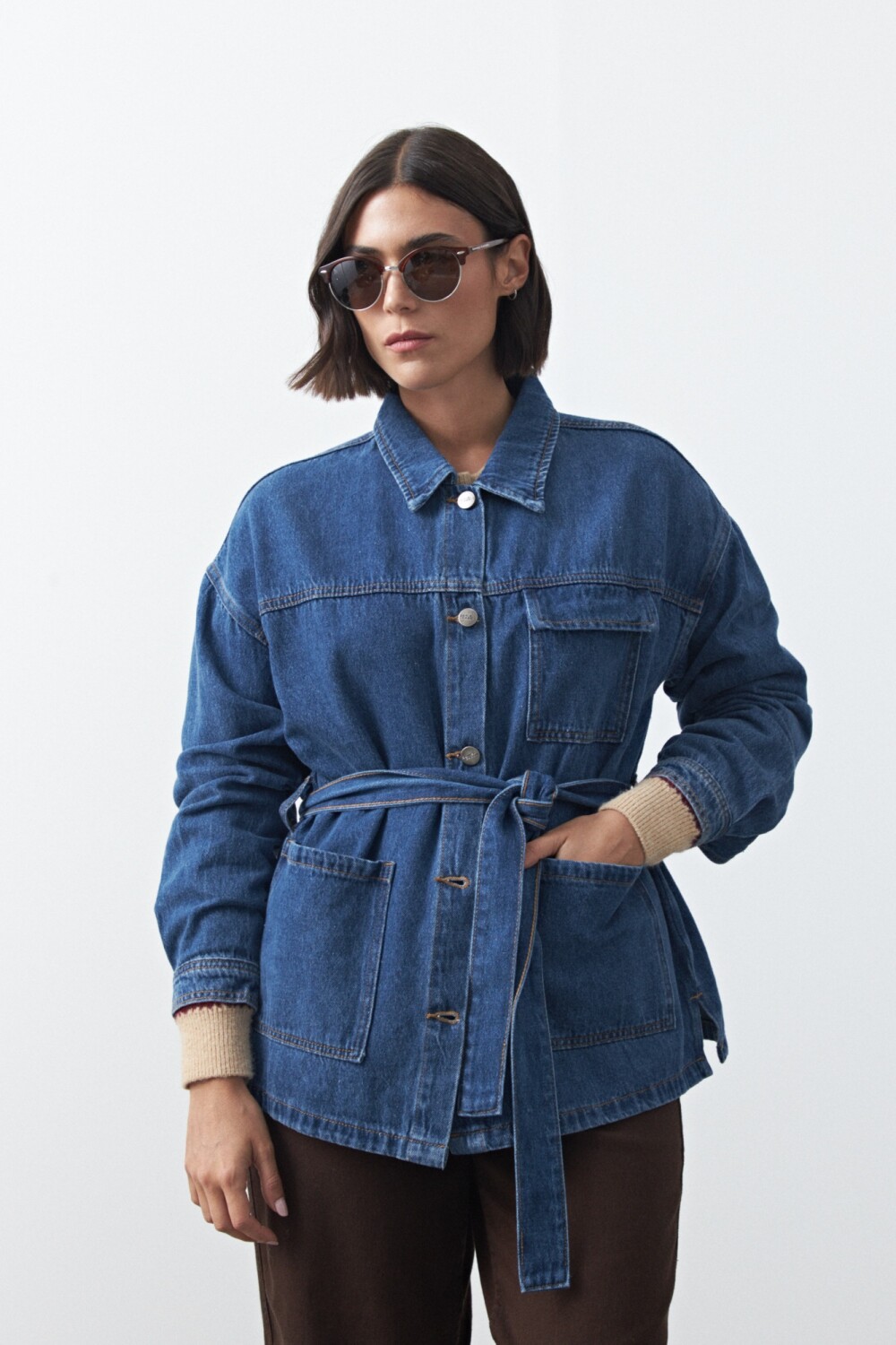 Sobrecamisa de jean con silueta relajada y cinturón para ajustar la prenda y definir la figura. Presenta bolsillos utilitarios y estructura liviana que la vuelve ideal para usar como abrigo intermedio. Un clásico atemporal que trasciende temporadas y funciona perfecto para superponer sobre tejidos o básicos, aportando un aire canchero y versátil a cualquier look.