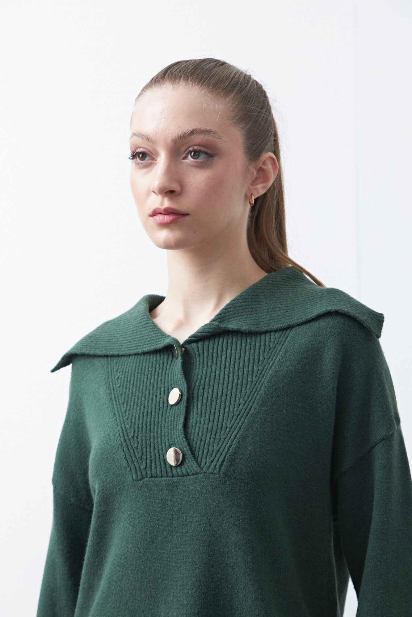 Sweater de tejido suave, de silueta relajada y diseño cuidado en los detalles. Presenta grandes botones metalizados en el frente que aportan carácter y un aire sofisticado, mientras que las mangas levemente acampanadas suman movimiento y un toque actual. El corte con pequeñas aberturas laterales mejora el calce y aporta comodidad, convirtiéndolo en una pieza versátil que funciona tanto en looks urbanos como en propuestas más pulidas.