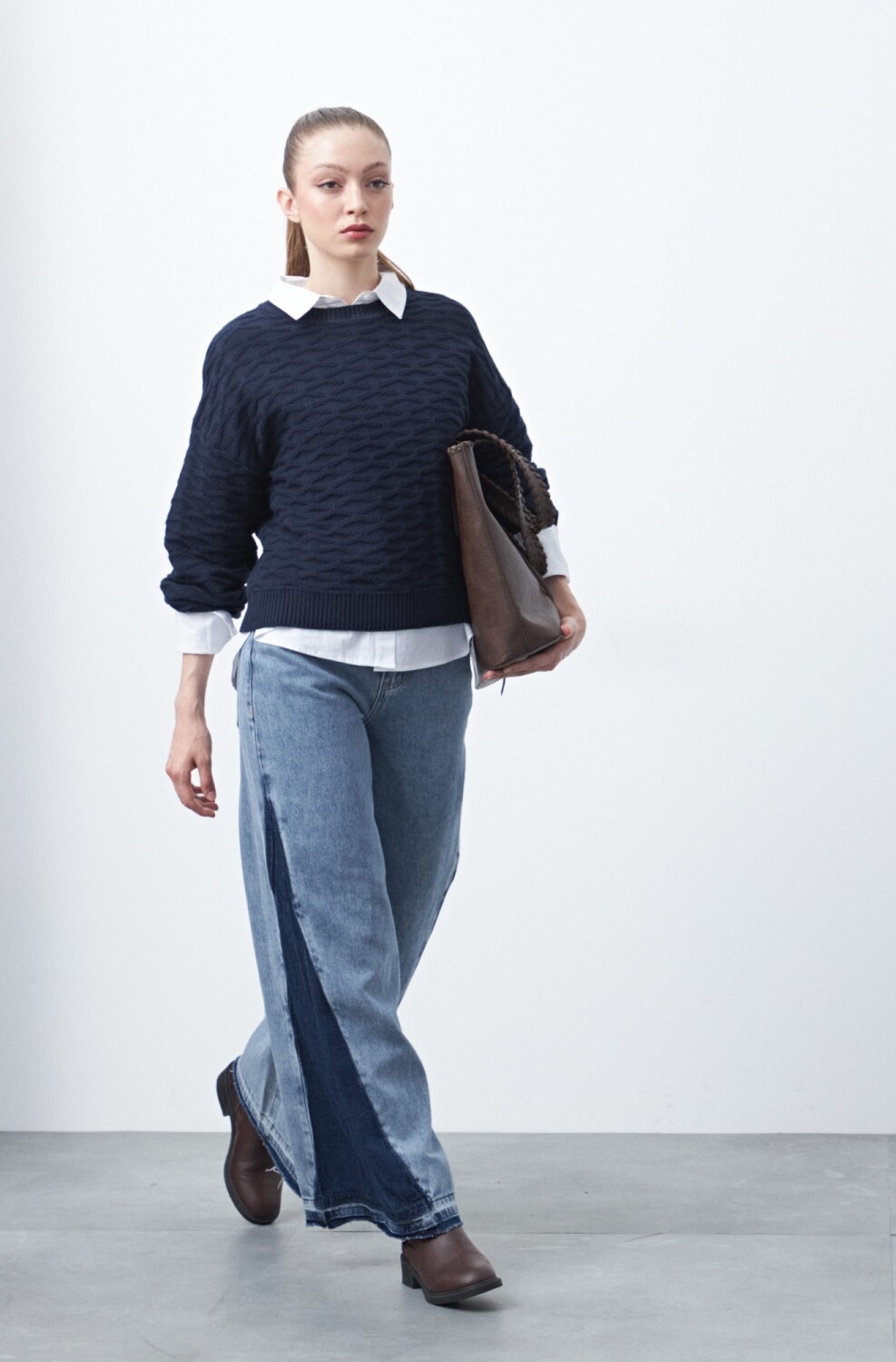 Sweater tramado de mangas abullonadas, de diseño delicado y textura protagonista que aporta profundidad visual al look. Las mangas con volumen sutil y puños elastizados equilibran estructura y comodidad, mientras que el tejido tramado suma un detalle distintivo que eleva este básico a una versión más trabajada. Ideal para looks urbanos prolijos o combinaciones más relajadas, es una prenda versátil que acompaña distintas ocasiones.