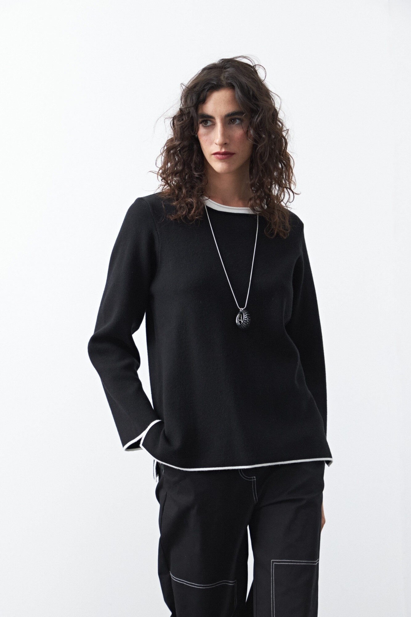 Sweater de jacquard de silueta recta y calce relajado, pensado para quienes buscan una prenda con diseño sutil y construcción cuidada. El tejido aporta una textura rica y uniforme, mientras que los vivos en contraste en cuello, puños y ruedo enmarcan la pieza y resaltan su impronta moderna.