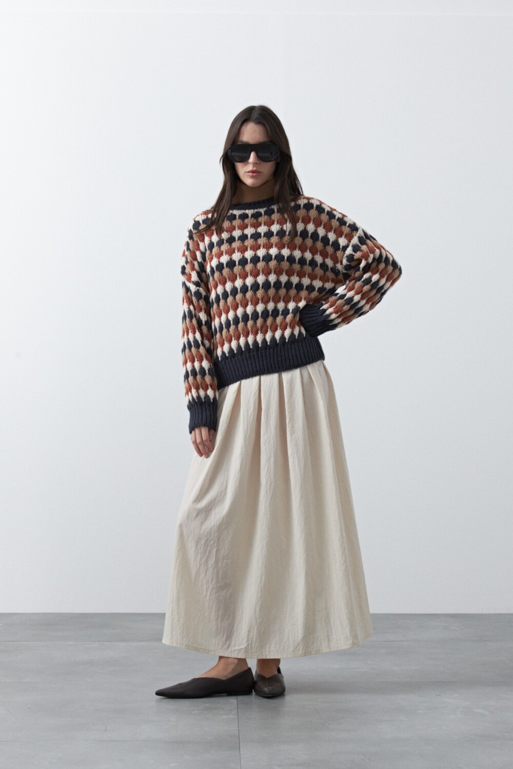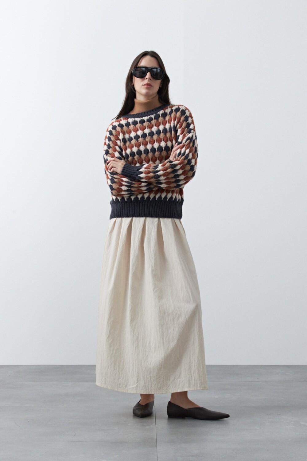 20 Sweater tramado con diseño geométrico que aporta textura y movimiento visual. Su tejido liviano pero con cuerpo suma dimensión, mientras el calce relajado lo vuelve cómodo y versátil. Una pieza que incorpora color y un toque divertido al look, ideal para combinar con básicos y dar protagonismo al outfit.