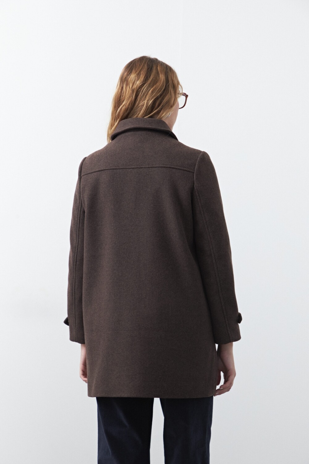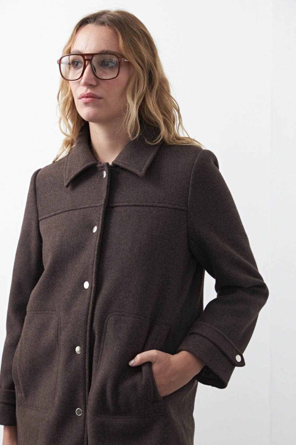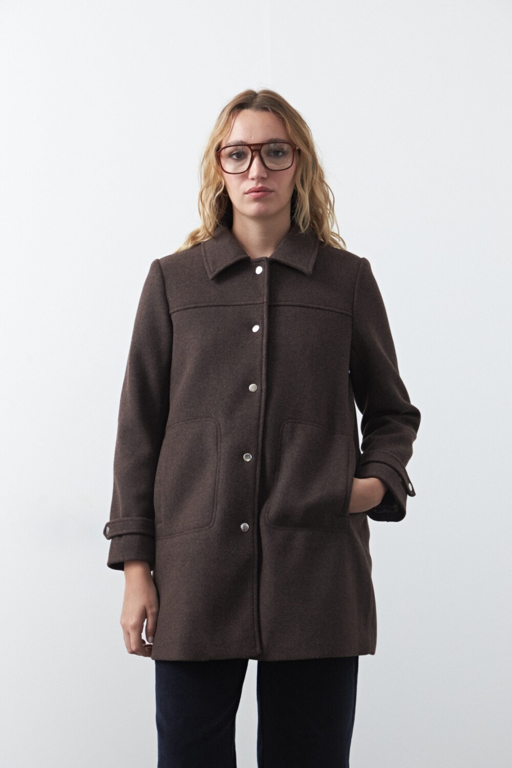 Tapado corto de paño, un clásico atemporal que eleva cualquier look invernal. Su diseño recto con cuello camisero y broches metálicos aporta una estética limpia y versátil, mientras que los bolsillos frontales suman funcionalidad. Ideal para usar sobre camisas, tejidos o capas livianas, acompañando desde outfits casuales hasta más pulidos.