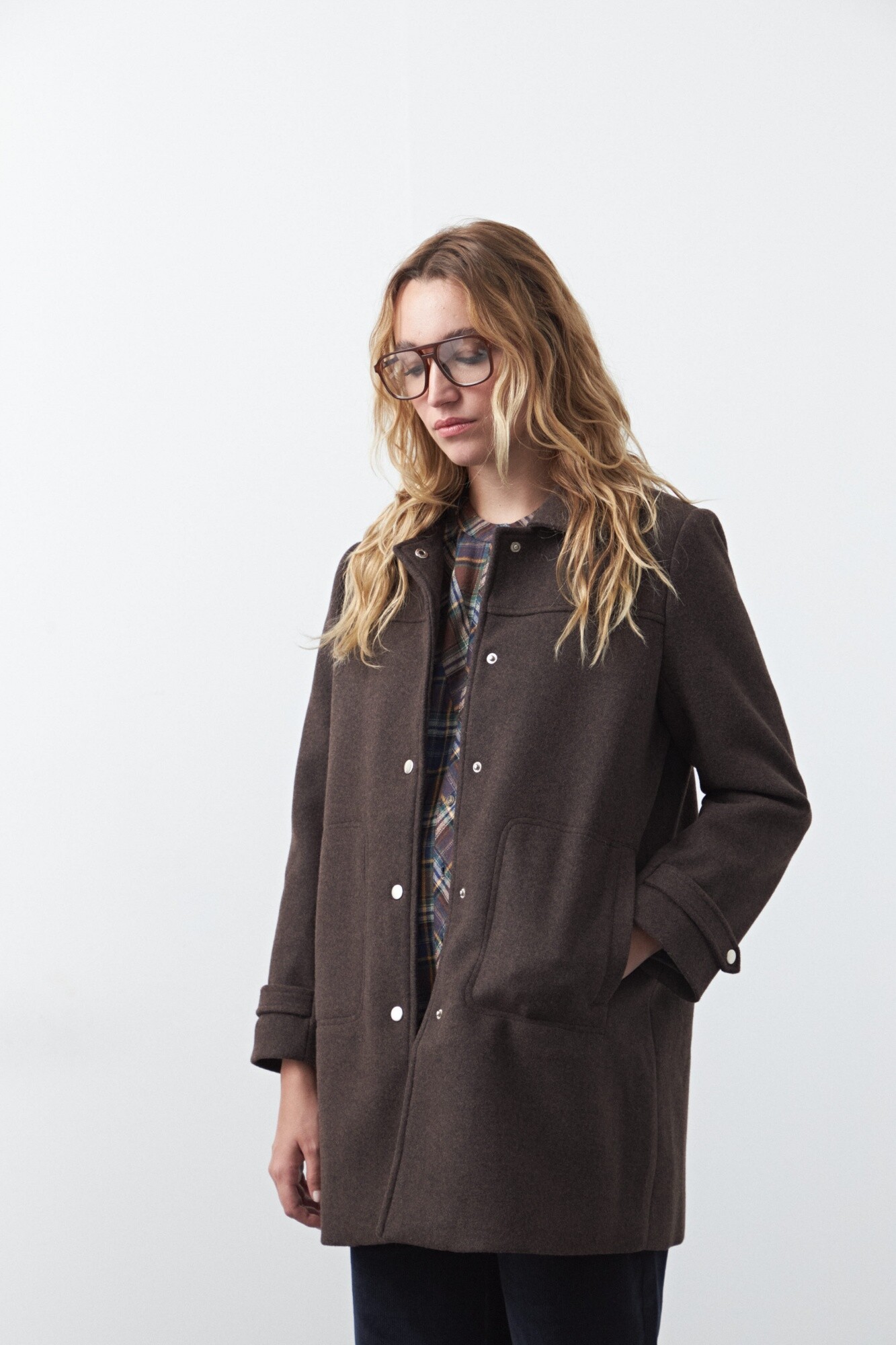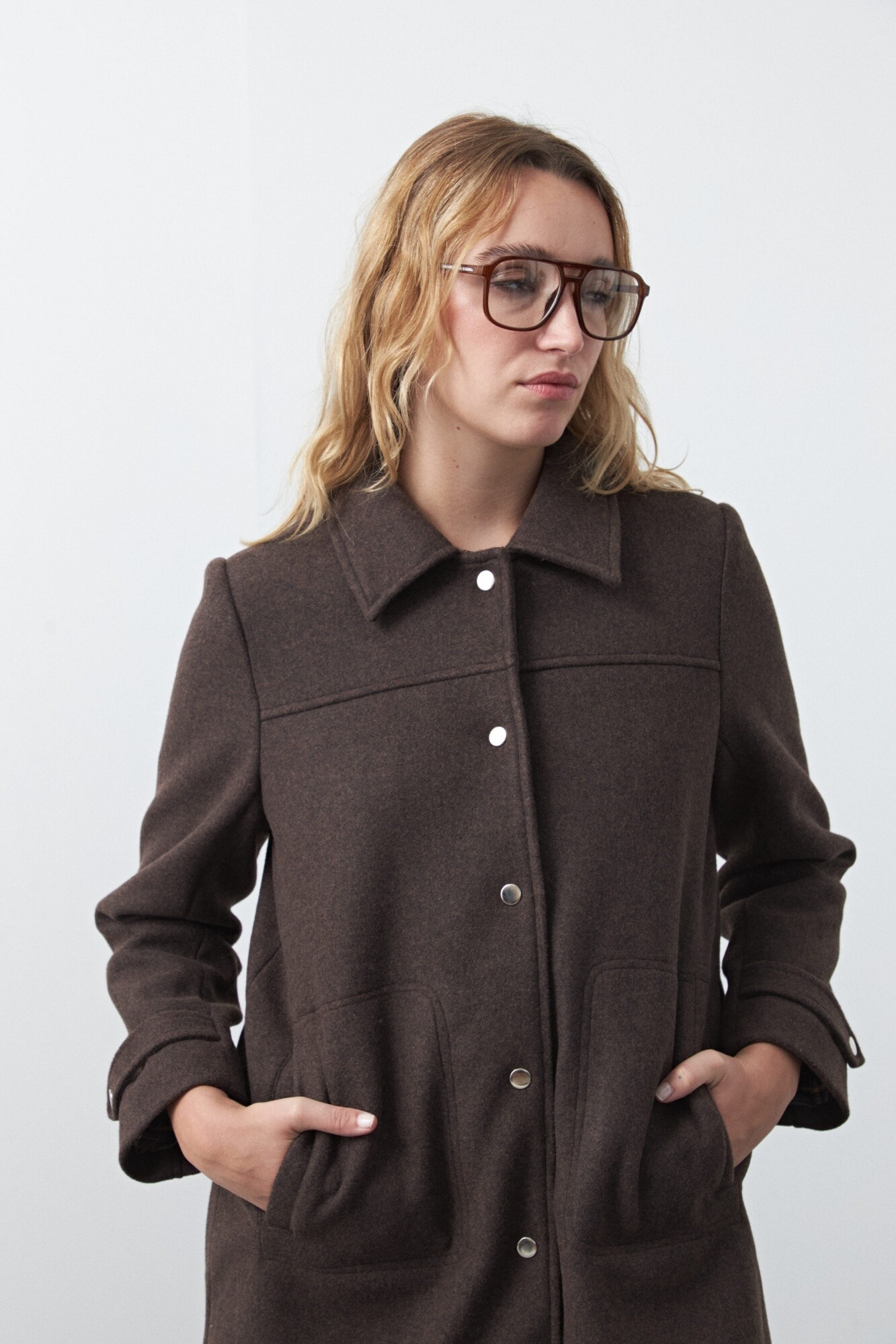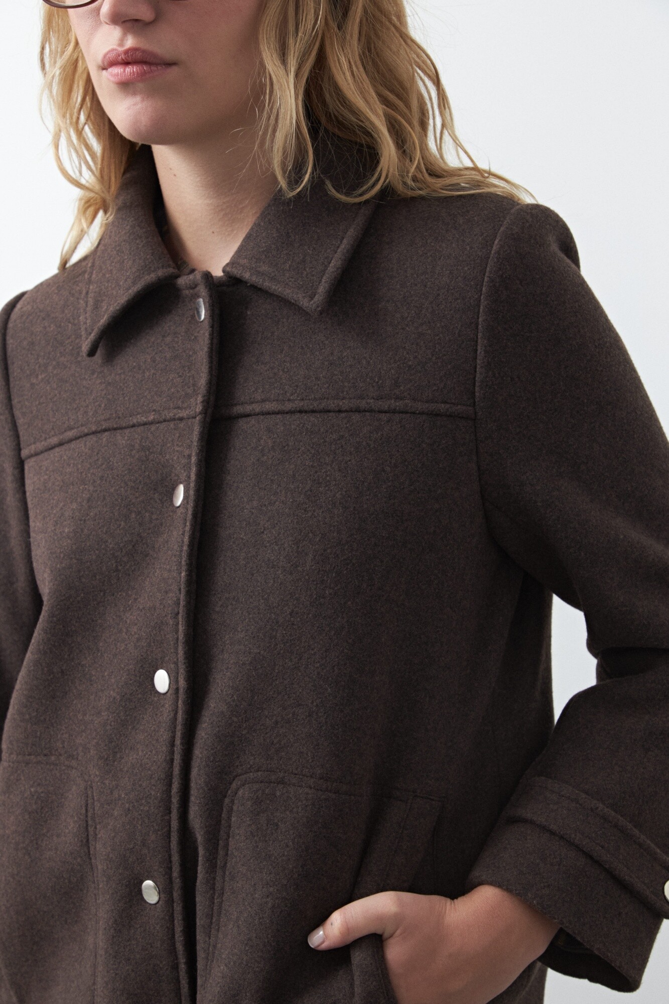 Tapado corto de paño, un clásico atemporal que eleva cualquier look invernal. Su diseño recto con cuello camisero y broches metálicos aporta una estética limpia y versátil, mientras que los bolsillos frontales suman funcionalidad. Ideal para usar sobre camisas, tejidos o capas livianas, acompañando desde outfits casuales hasta más pulidos.