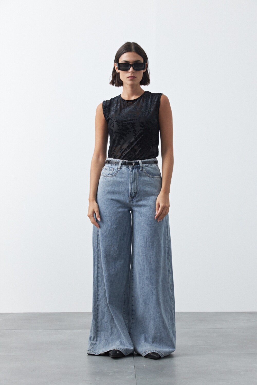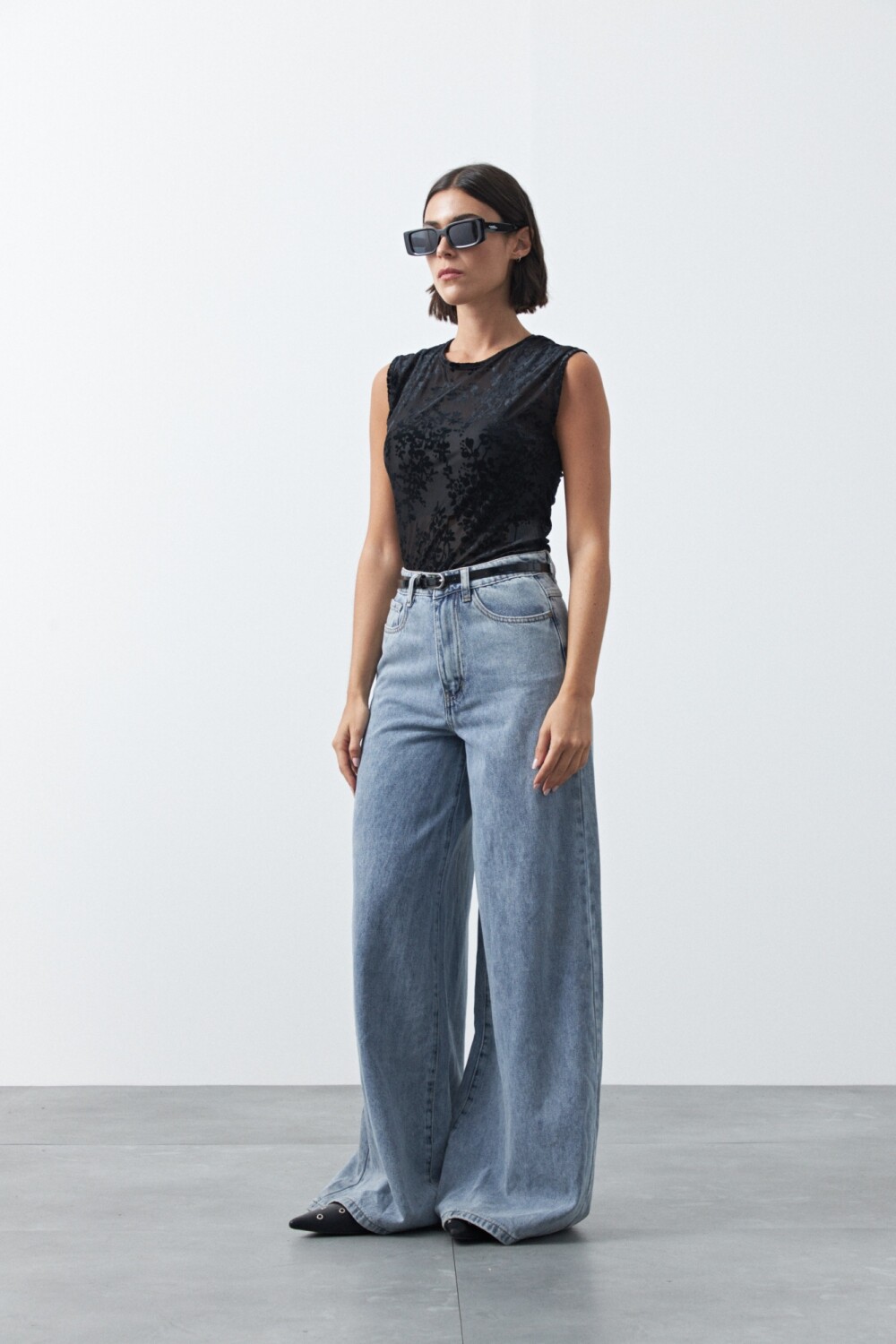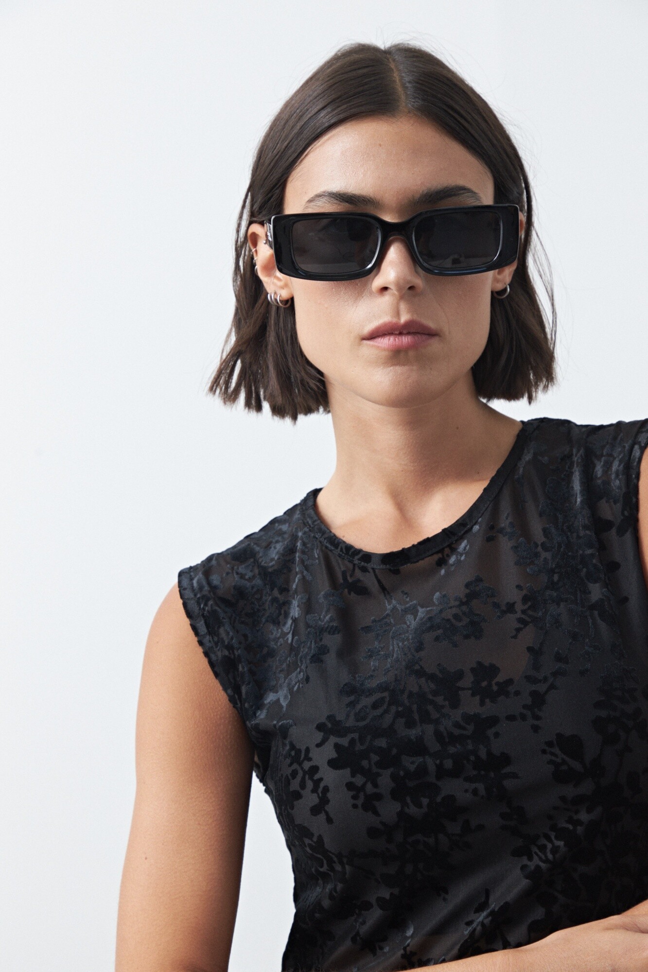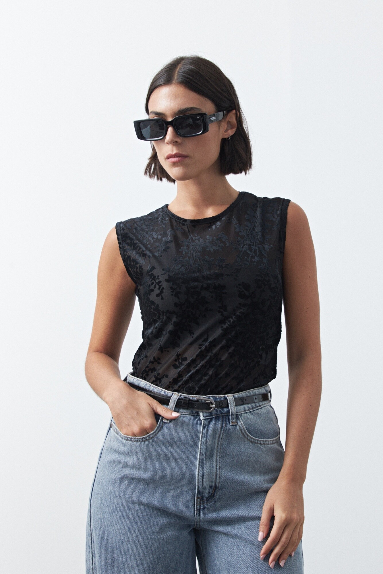 Top de tul con estampa aterciopelada que aporta textura y un efecto visual sutil. De calce al cuerpo y mangas cortas, es una prenda liviana y versátil que funciona tanto sola como en capas, ideal para elevar looks básicos y un gran aliado para un look de noche.