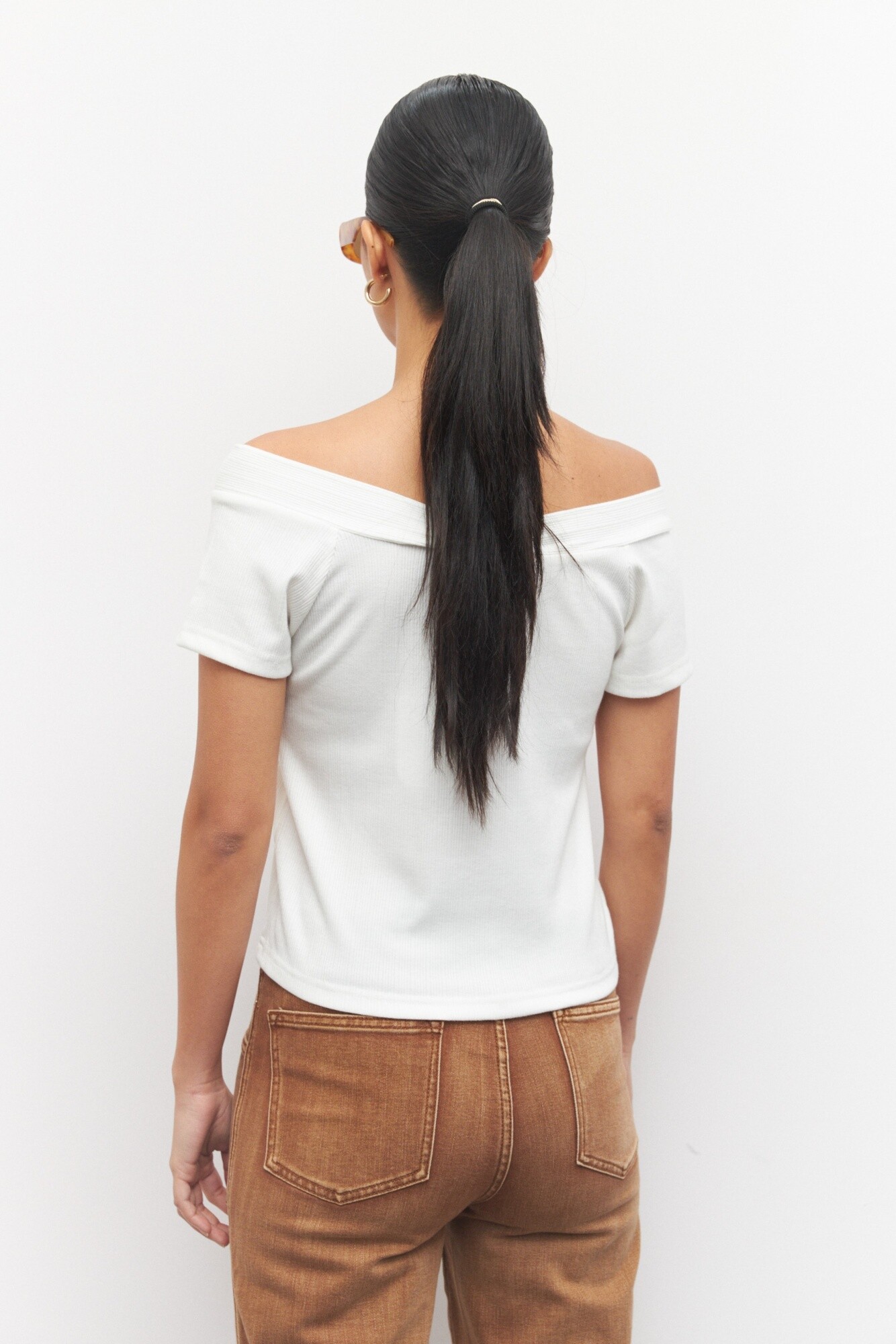 Top de manga corta y hombros bajos.