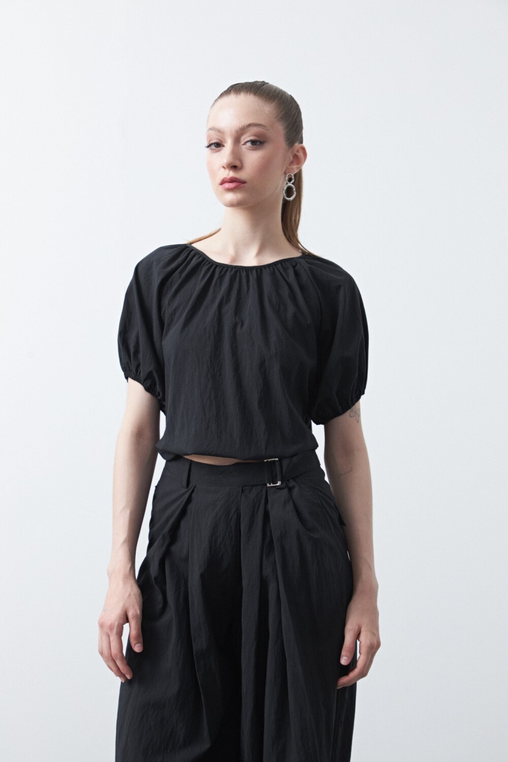 Top pensado como pieza statement, con detalle de abertura y lazo en la espalda que suma diseño y delicadeza.