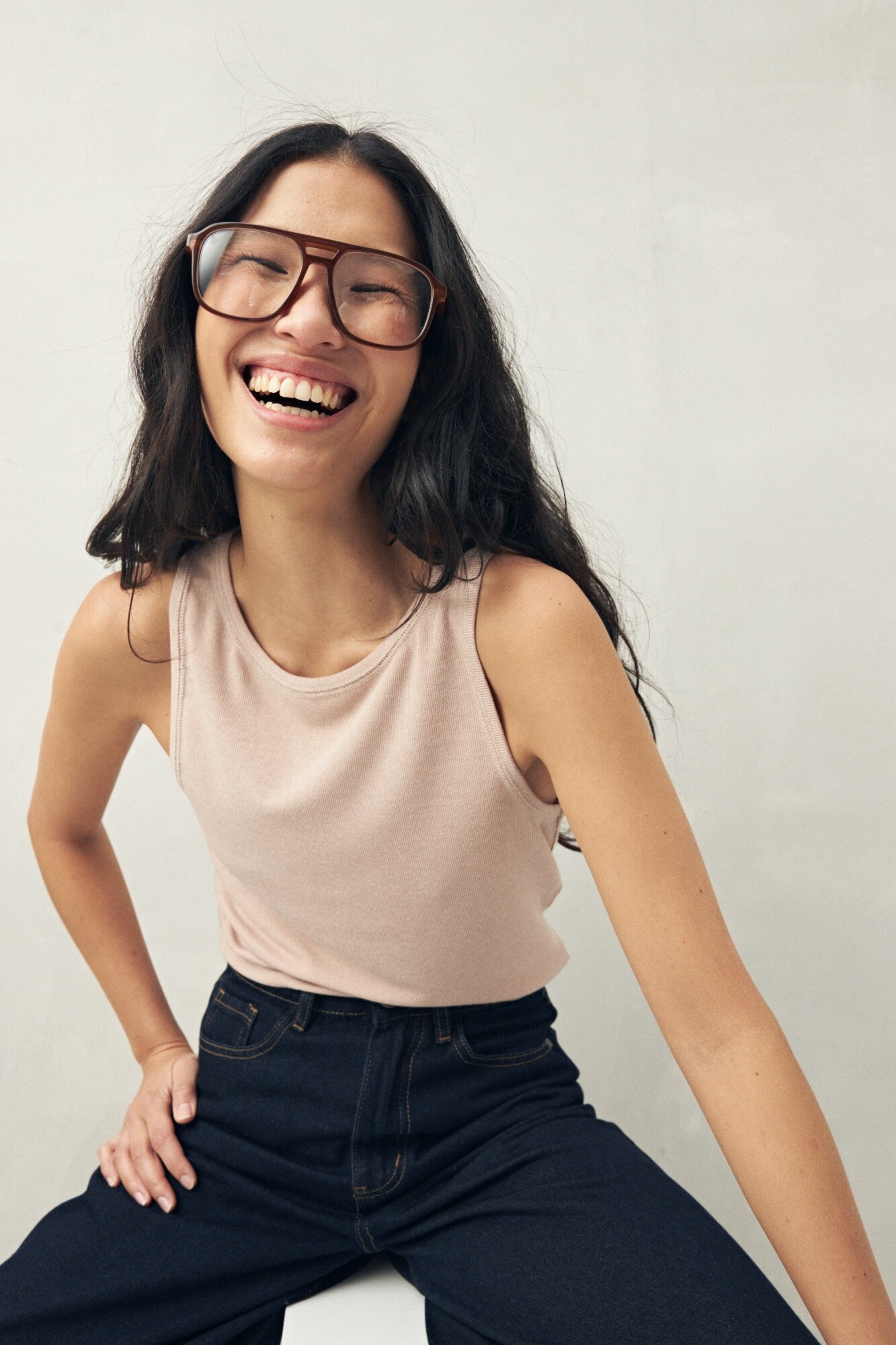 20 Un básico atemporal que se adapta a cualquier look. Su tejido de viscosa con toque de elasticidad aporta suavidad, caída y un calce cómodo que realza la silueta sin ajustar. Ideal para combinar con jeans, faldas o shorts, tanto en versiones casuales como más arregladas. Un infaltable del guardarropa que se renueva cada temporada por su versatilidad y estilo minimalista.