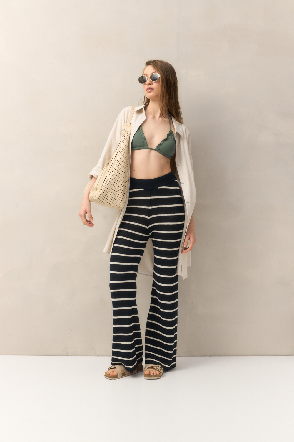 Top de bikini con diseño de triángulo clásico y delicado frunce en los bordes, que aporta un detalle sutil y femenino. Confeccionado en tejido elástico y suave, se adapta al cuerpo ofreciendo comodidad y ajuste perfecto. Un esencial del verano que combina con cualquier bottom de la colección para crear looks de playa versátiles y trendy.