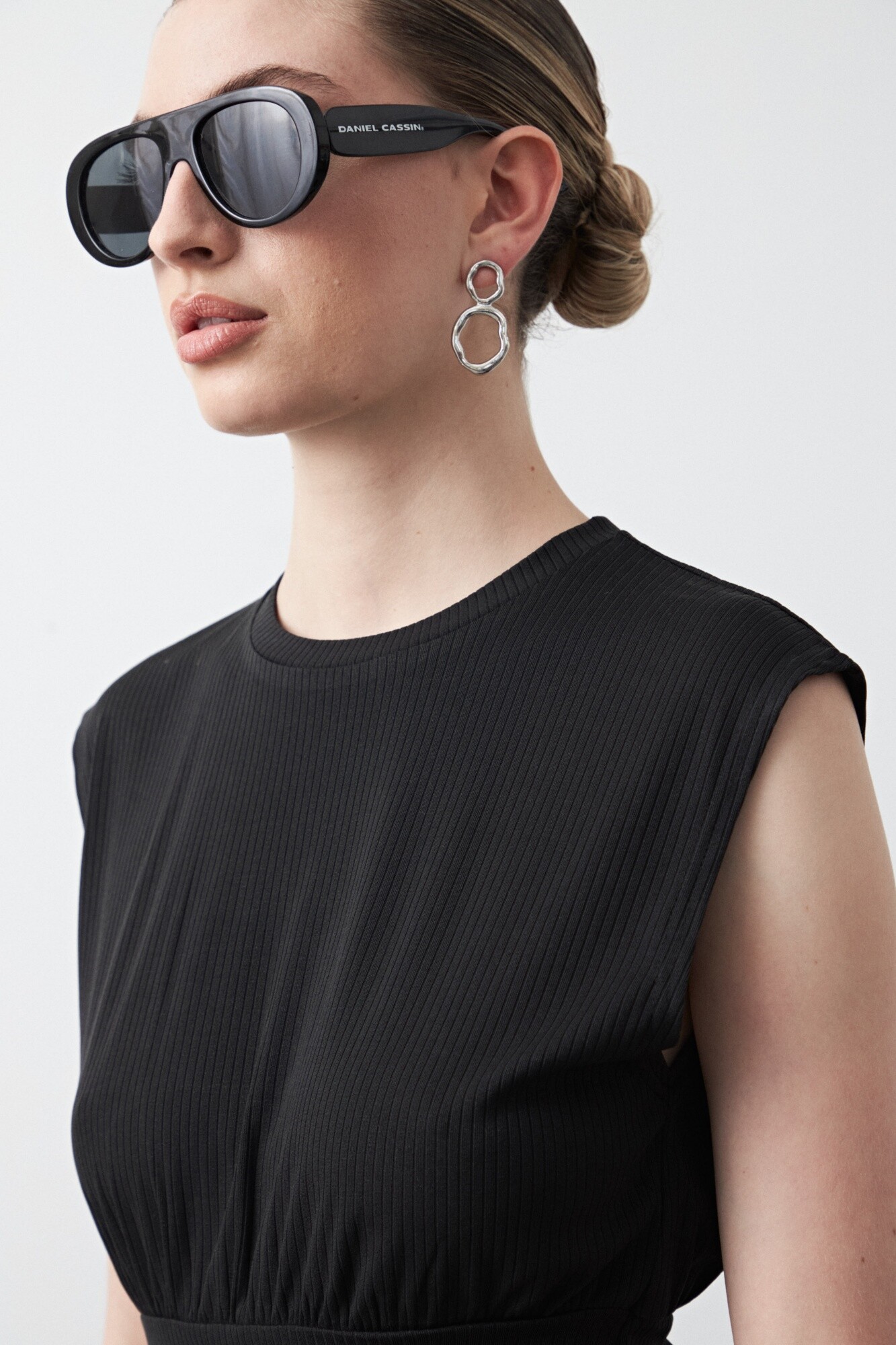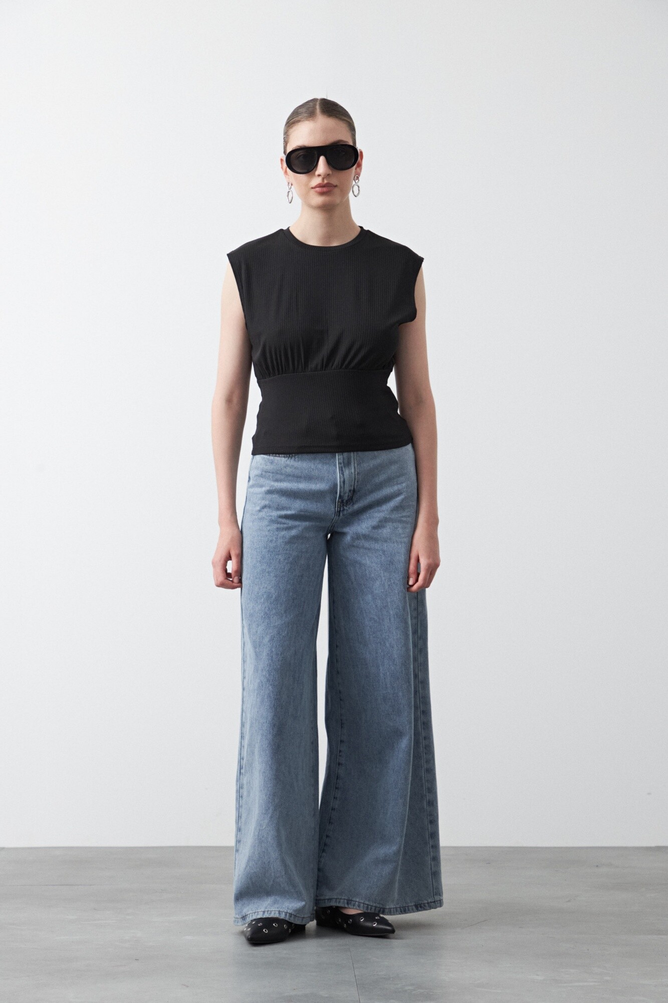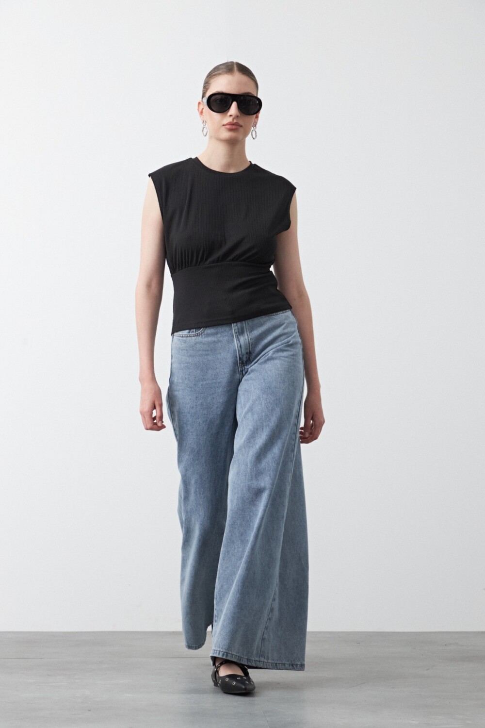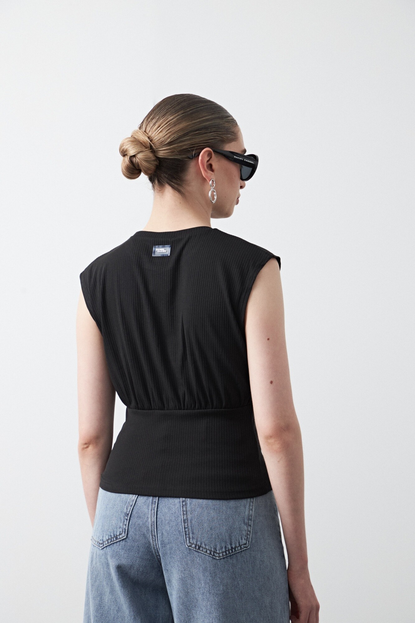 Top sin mangas confeccionado en tejido acanalado con elasticidad, que acompaña la silueta de forma cómoda y prolija. El diseño suma hombros definidos y un recorte bajo el busto que realza la forma y aporta estructura, logrando un equilibrio entre minimalismo y detalle. Una prenda versátil, ideal para looks urbanos o más sofisticados, clave para elevar cualquier look desde una silueta limpia y actual.