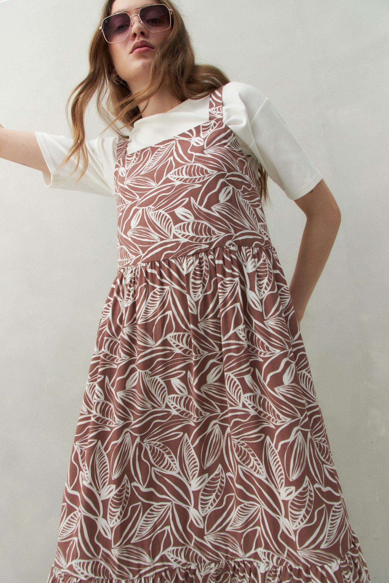 Confeccionado en viscosa liviana que aporta fluidez y movimiento, ideal para los días cálidos. El corte en la cintura realza la silueta y su falda amplia crea una caída natural con aire bohemio y fresco. Perfecto para un look relajado pero con estilo.