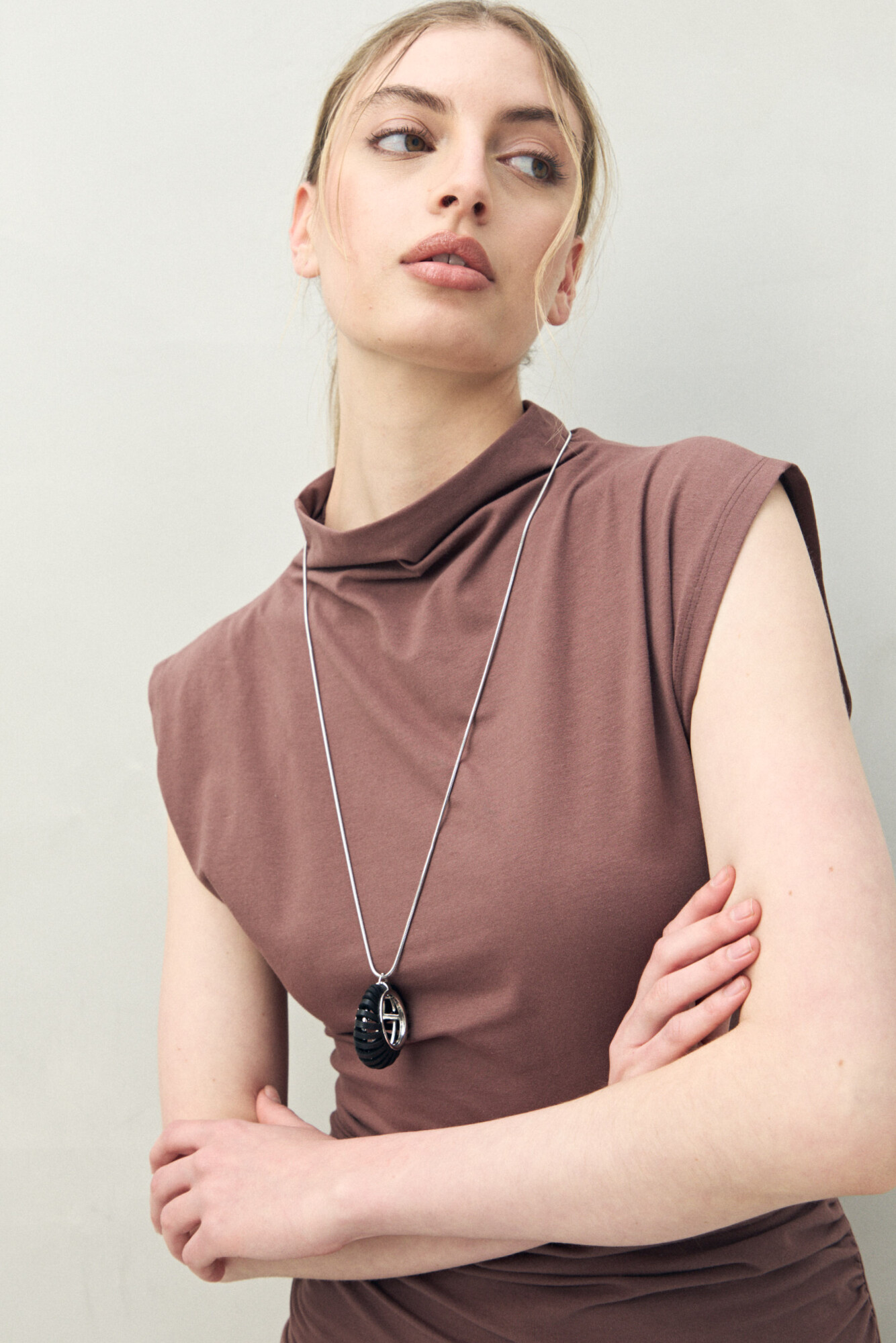 4651 Vestido de punto corto sin mangas que combina minimalismo y actitud en una silueta que realza la figura. Su diseño de cuello cerrado y hombros levemente estructurados aporta presencia, mientras el frunce lateral estiliza y genera un efecto visual favorecedor.