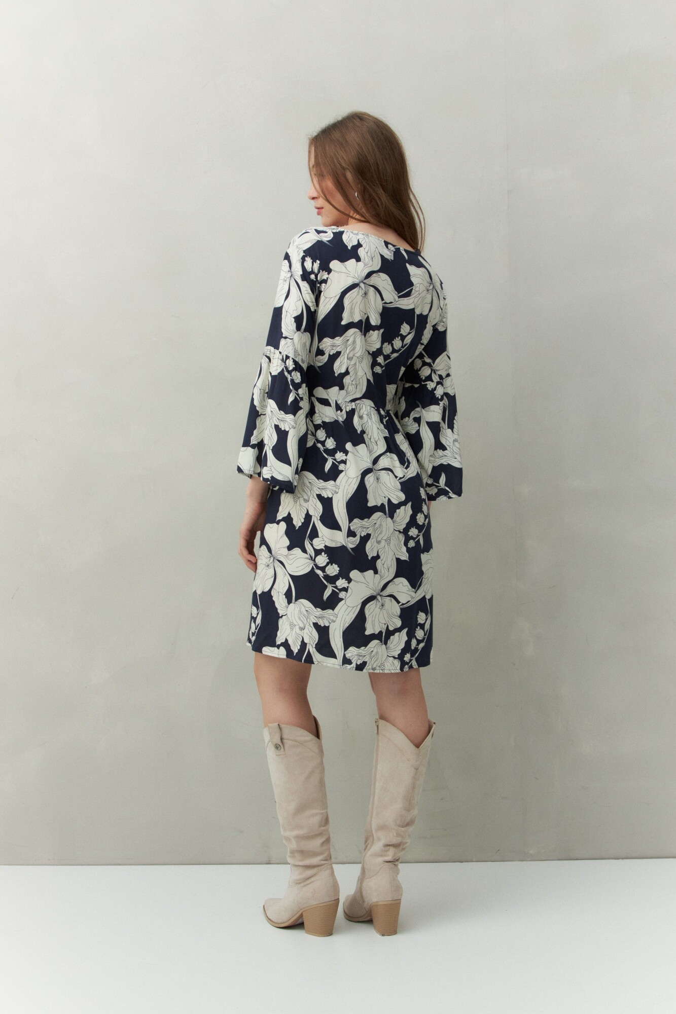 Su corte en la cintura define la silueta, mientras que las mangas amplias aportan movimiento y un aire boho-chic. Una prenda liviana y versátil, ideal para elevar looks de día o acompañar con botas y accesorios para la noche.