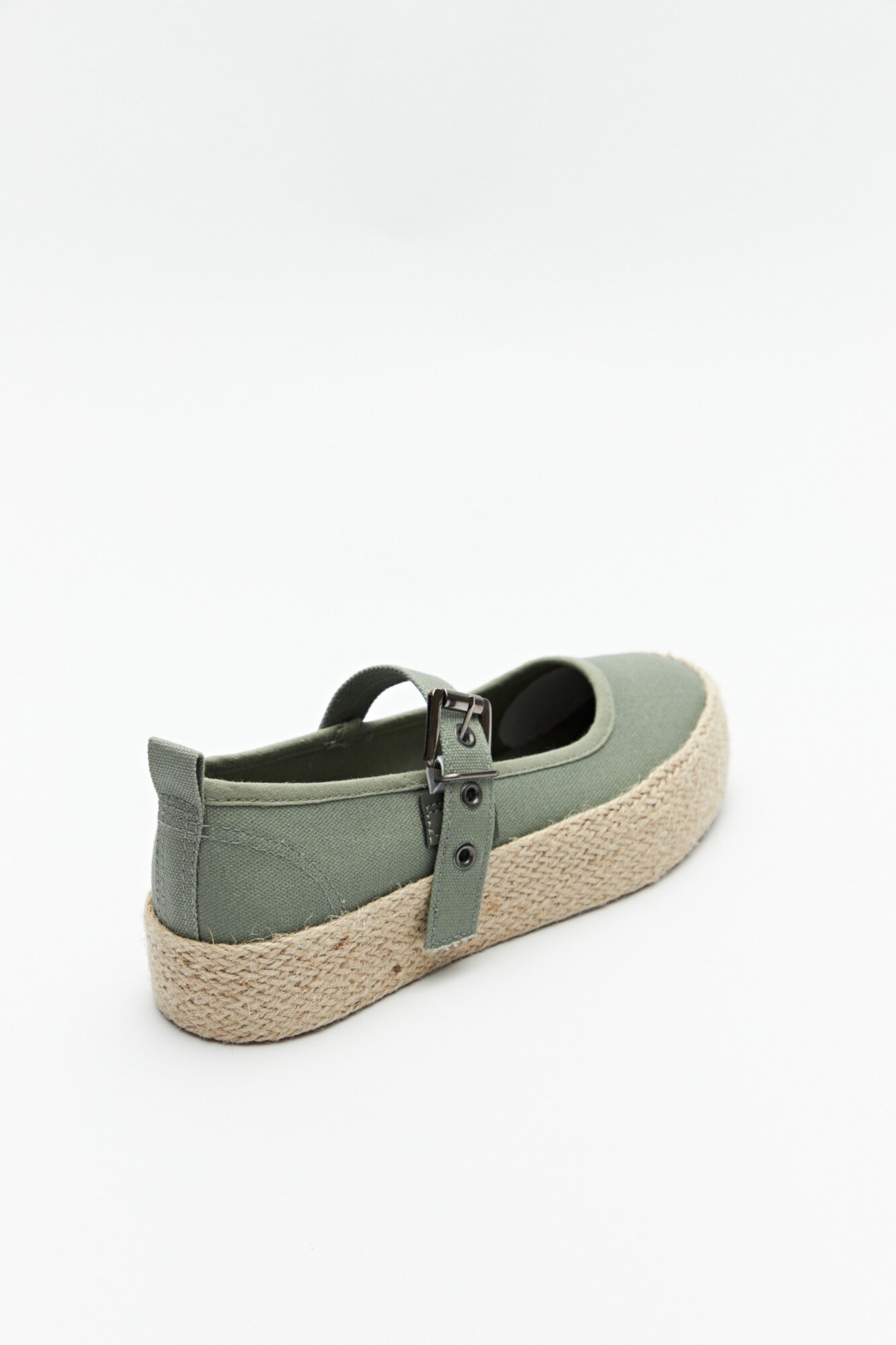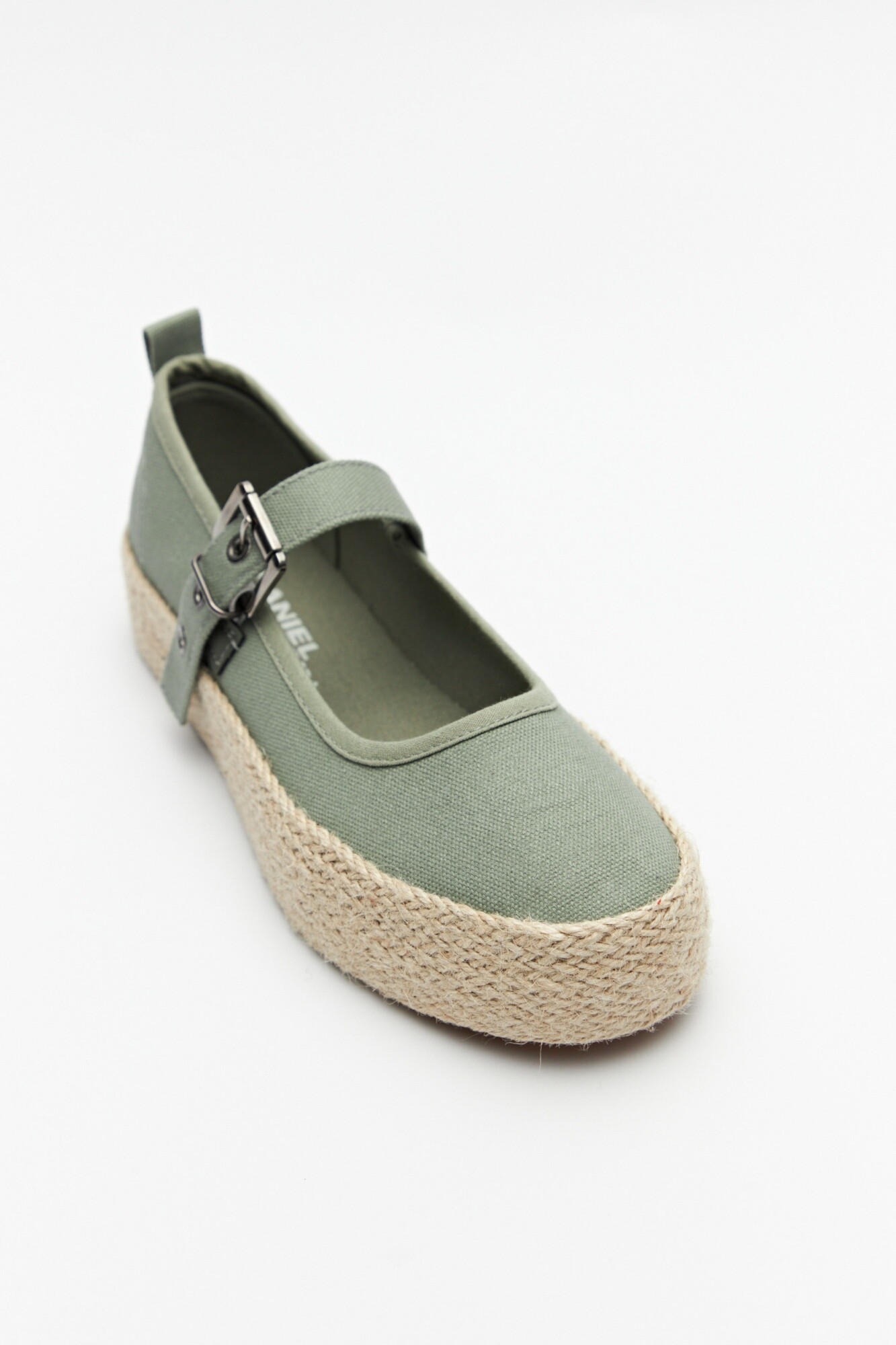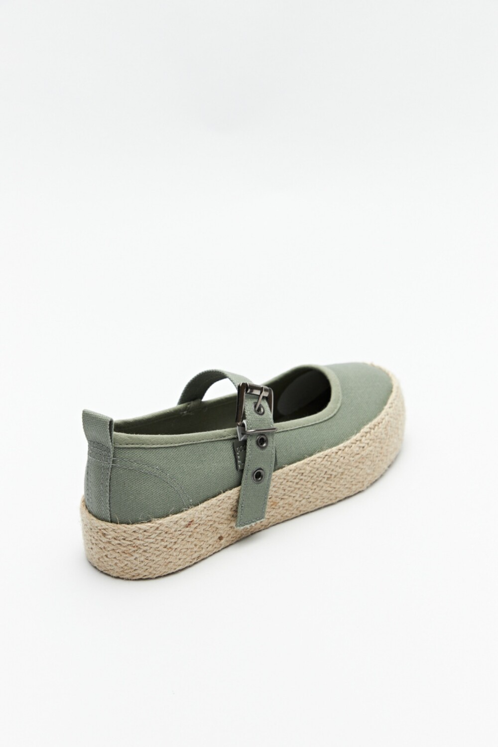 Zapatillas de tela con tira ajustable y hebilla metálica, suela de yute con plataforma de 3,5cm.
