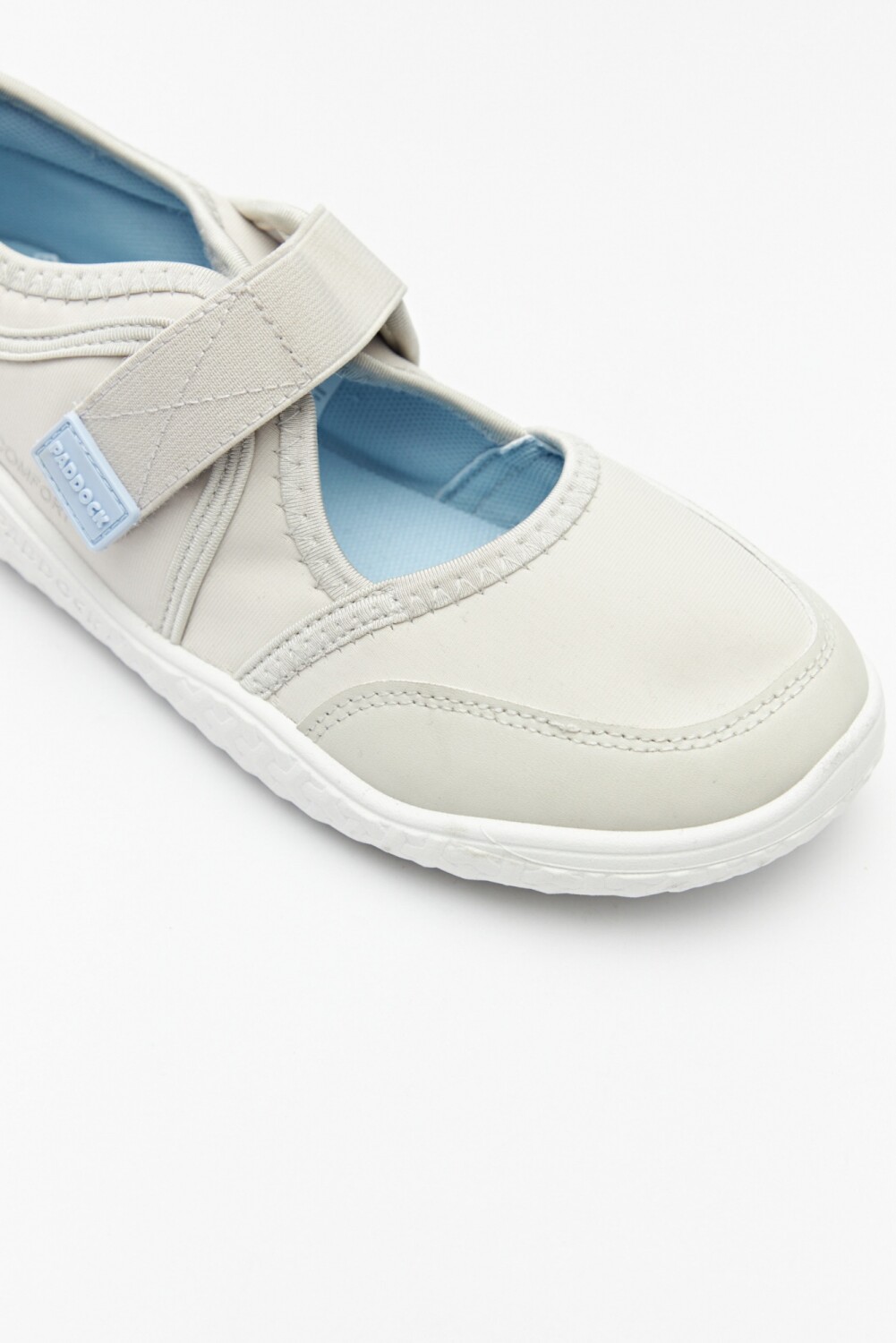 Guillerminas ergonómicas inspiradas en el calzado barefoot: un zapato minimalista que imita ir descalzo. Es de suela fina, plana y flexible, sin tacos ni soporte rígido, para que el pie se mueva natural y se fortalezca. Cuenta con tira ajustable de velcro.