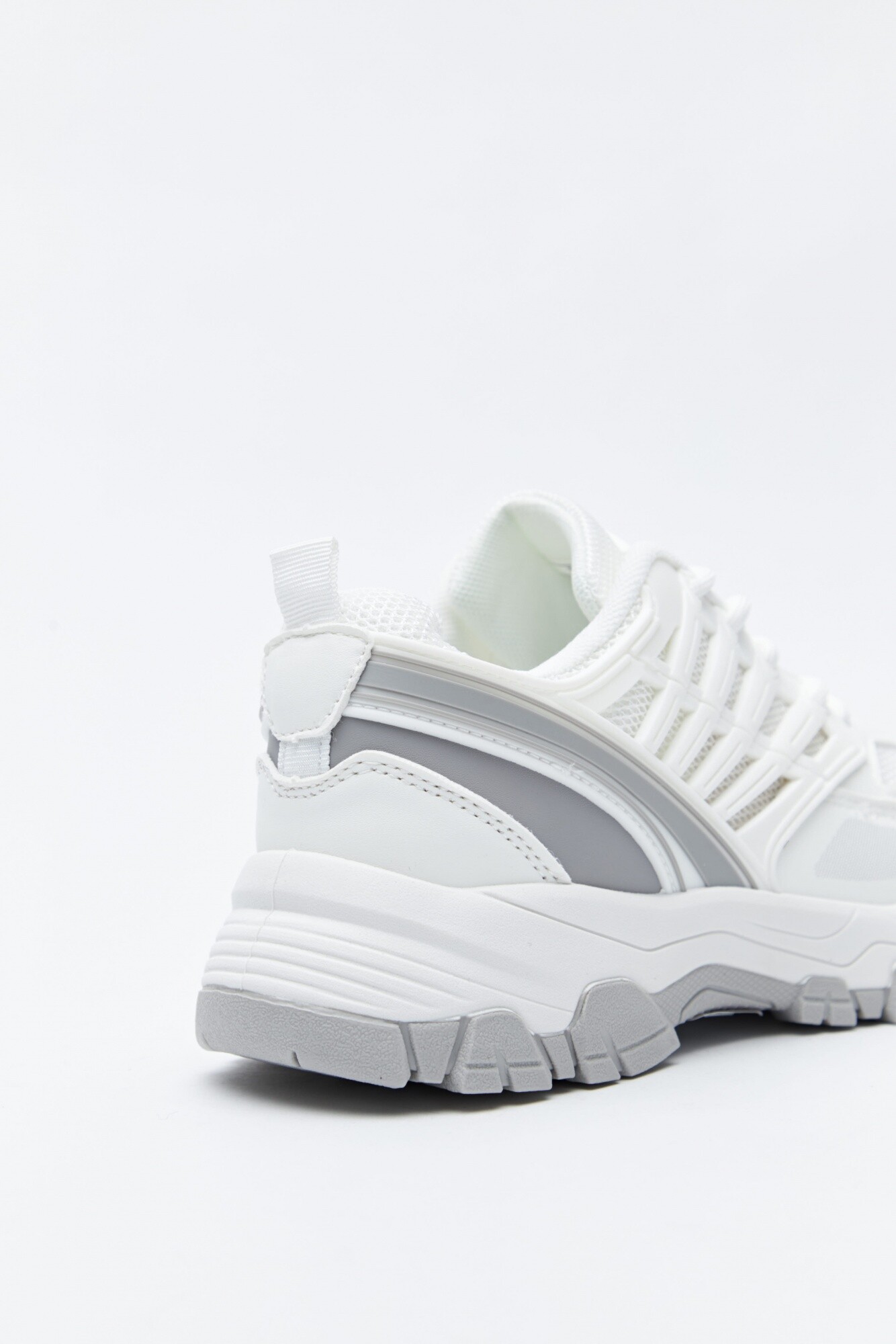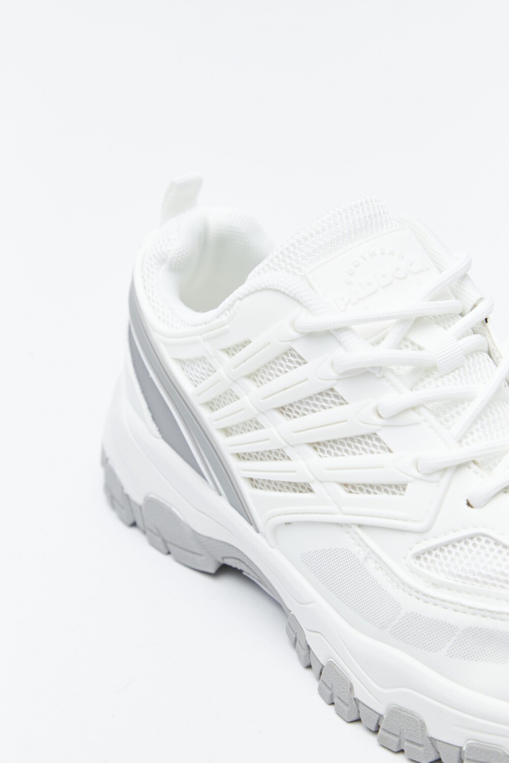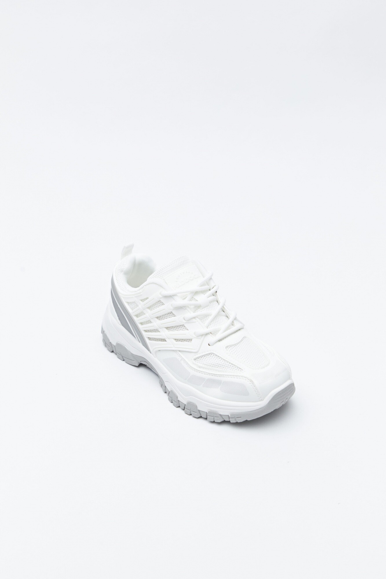 Zapatillas deportivas de inspiración trekking, diseñadas para acompañar un estilo urbano con impronta técnica. Su estructura combina paneles de mesh con piezas en poliuretano que aportan soporte y generan un diseño dinámico, mientras que el sistema de cordones integrado refuerza el ajuste y suma un detalle visual moderno. La suela robusta con relieve proporciona estabilidad y confort, creando un modelo versátil que se adapta a looks casuales, deportivos o de estética outdoor.