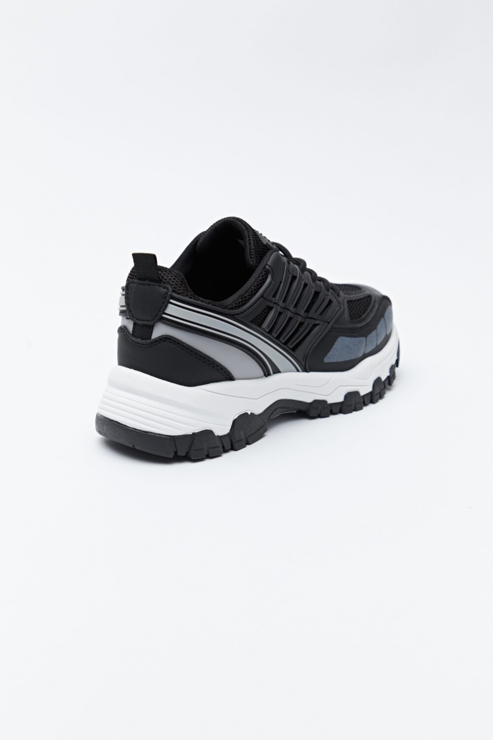 Zapatillas deportivas de inspiración trekking, diseñadas para acompañar un estilo urbano con impronta técnica. Su estructura combina paneles de mesh con piezas en poliuretano que aportan soporte y generan un diseño dinámico, mientras que el sistema de cordones integrado refuerza el ajuste y suma un detalle visual moderno. La suela robusta con relieve proporciona estabilidad y confort, creando un modelo versátil que se adapta a looks casuales, deportivos o de estética outdoor.