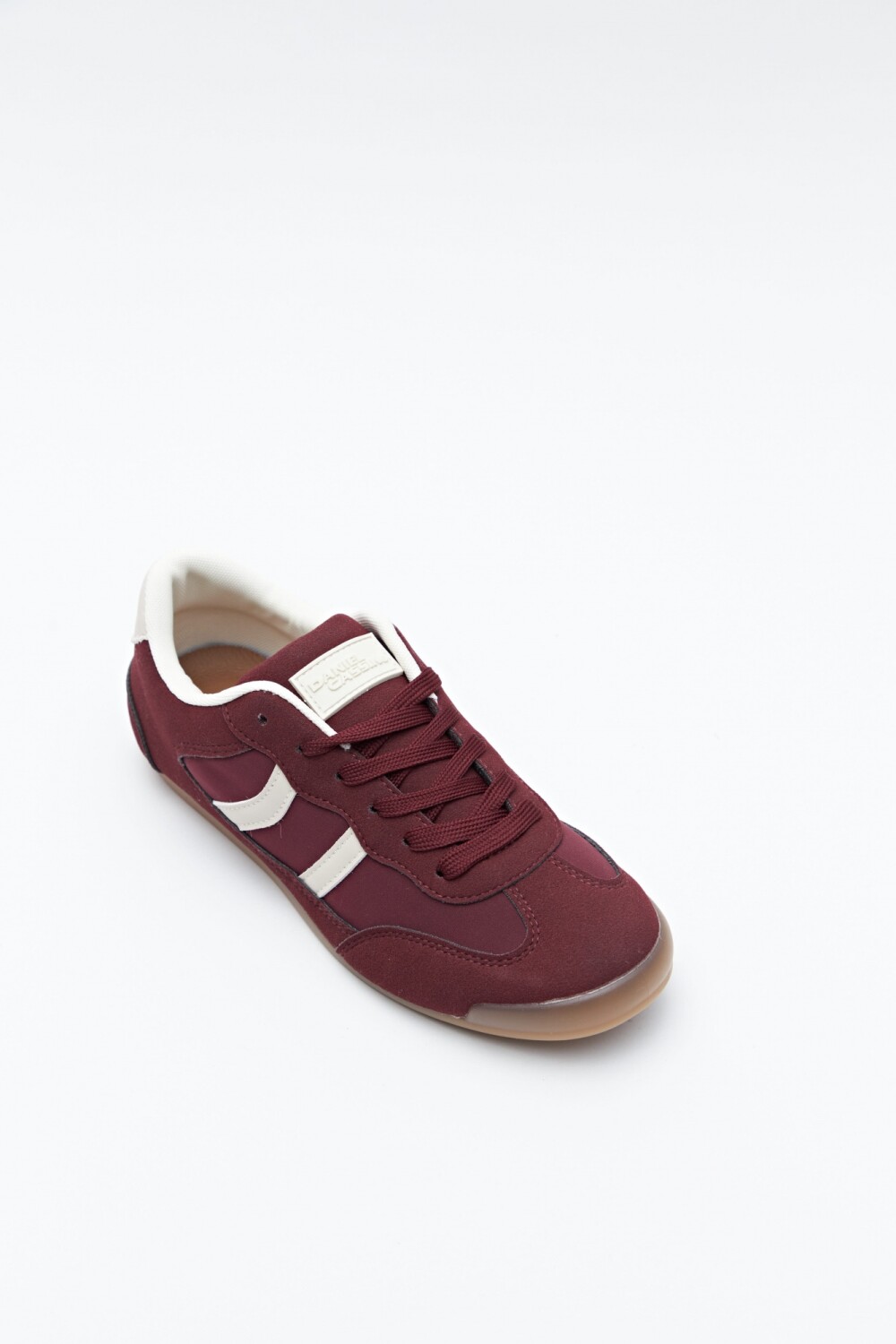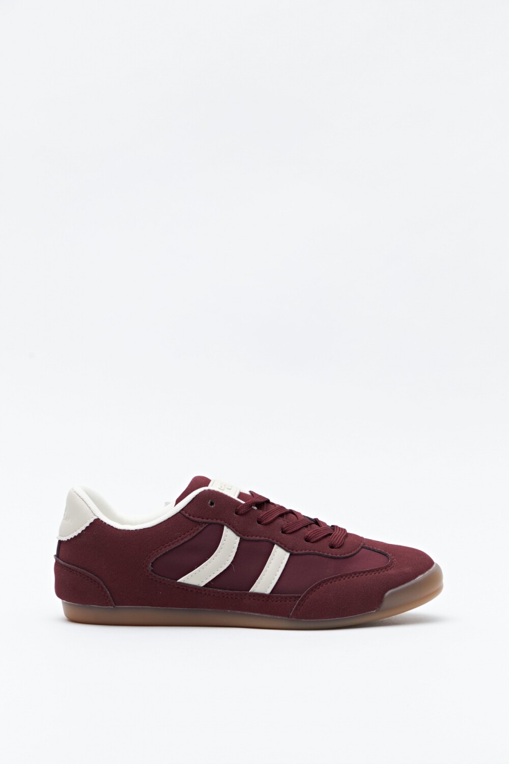 Zapatilla urbana de perfil bajo con diseño retro, confeccionada en poliuretano combinado con textura tipo gamuza. Presenta puntera redondeada, cordones clásicos y suela baja que aporta comodidad y un look relajado. En sintonía con las tendencias de calzado 2026, las zapatillas de inspiración vintage y siluetas limpias se consolidan como un esencial cotidiano, ideal para elevar cualquier look casual.