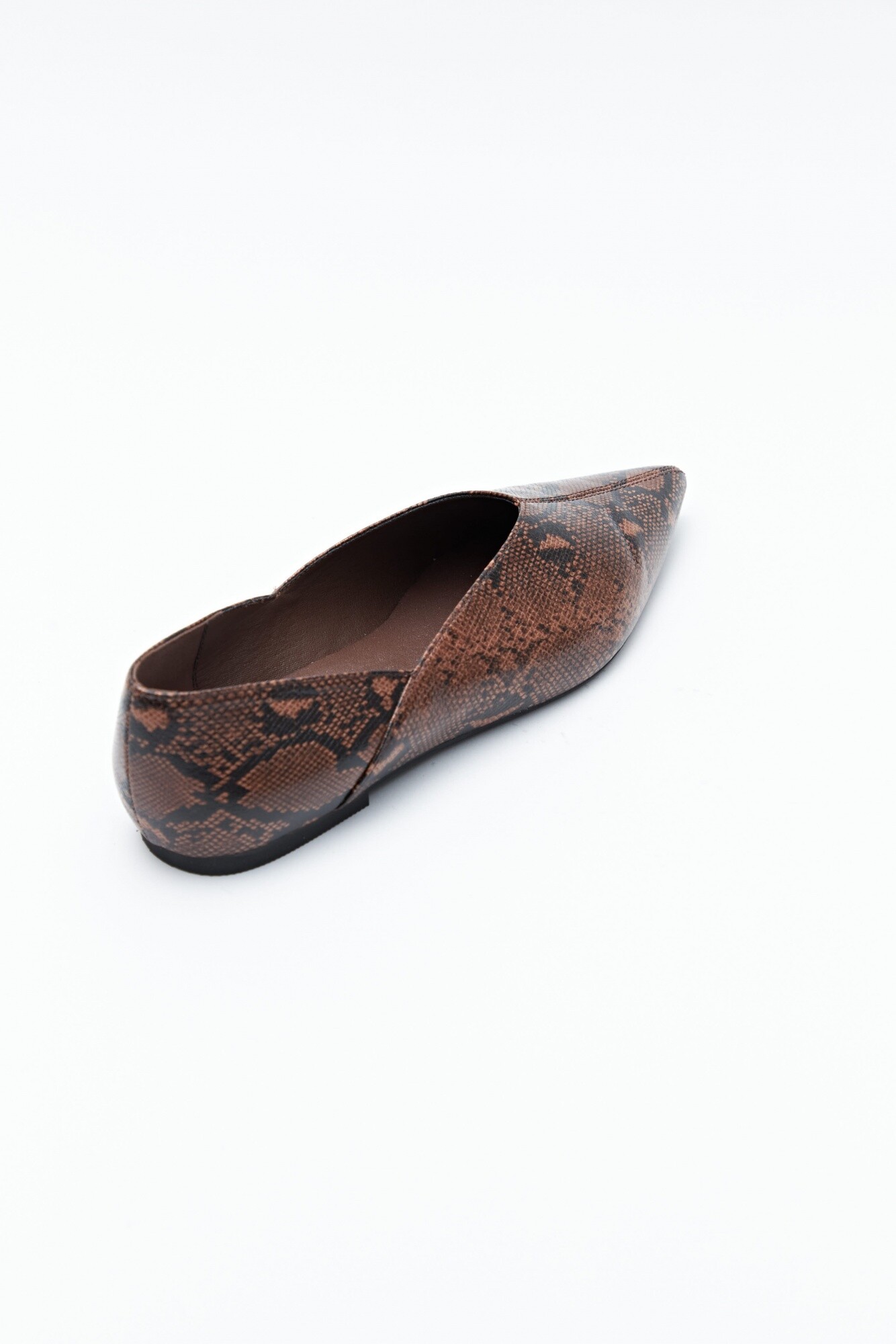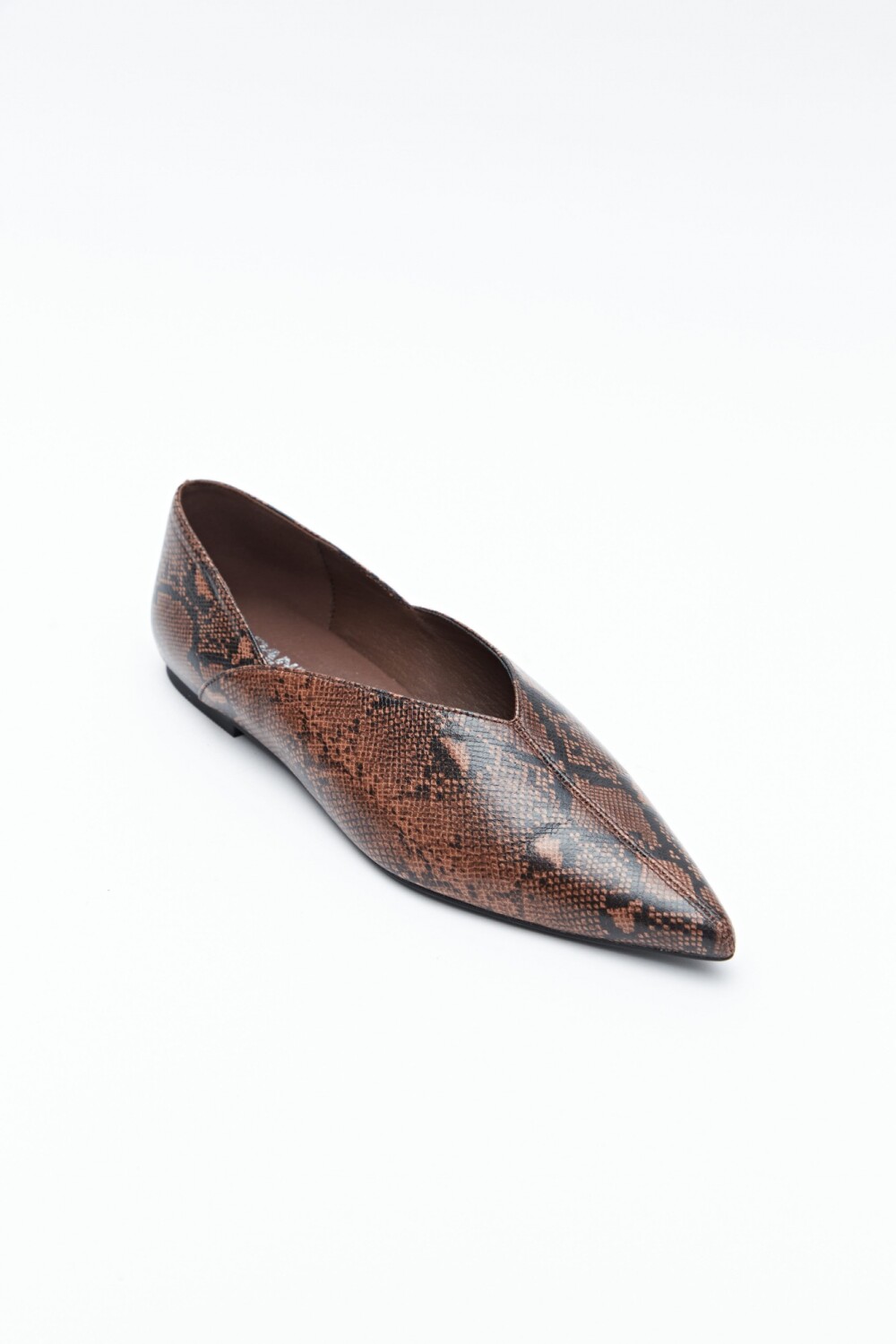Zapato bajo de punta afinada con diseño minimal, confeccionado en poliuretano de acabado liso y estructura flexible. Presenta base baja y silueta limpia que aporta comodidad y un look pulido. En sintonía con las tendencias de calzado 2026, los modelos planos de líneas depuradas y estética atemporal se consolidan como un esencial del guardarropa urbano, ideales para elevar cualquier look.
