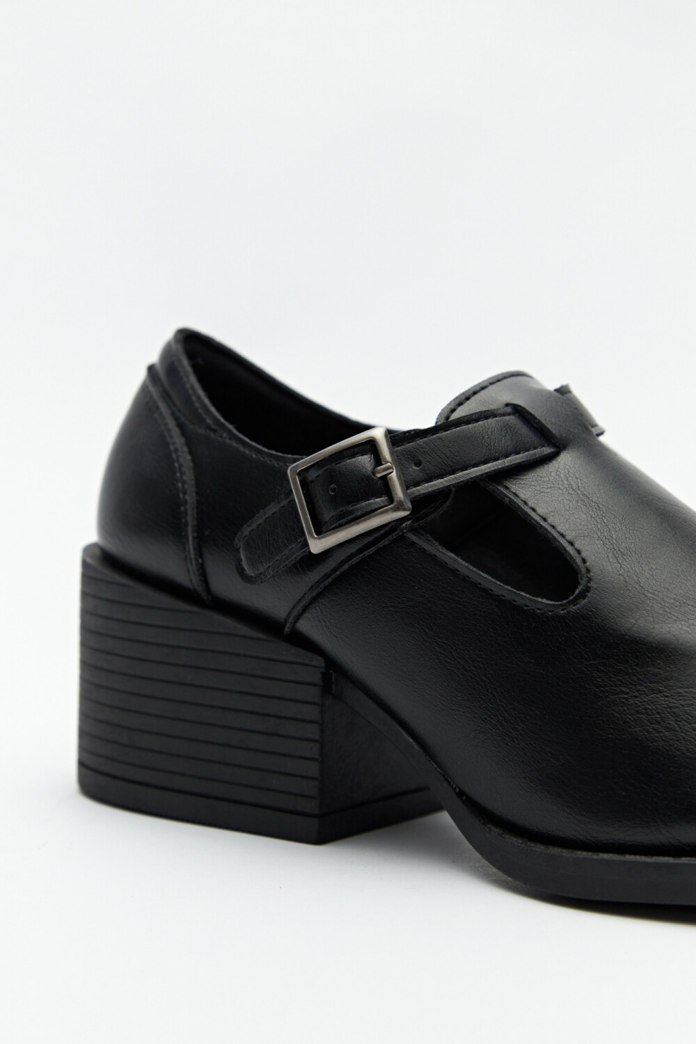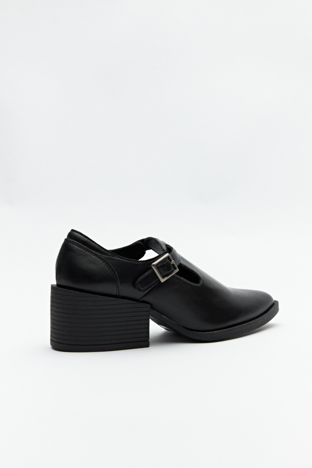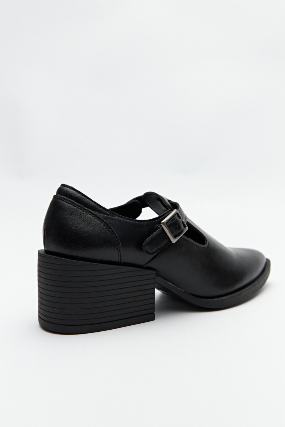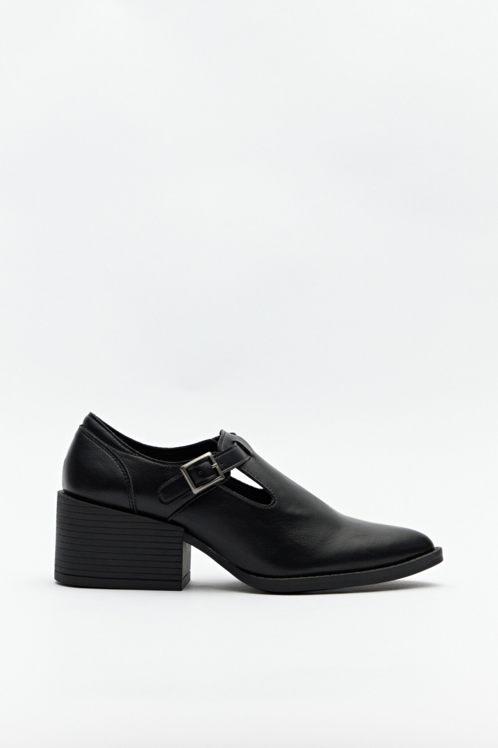 Zapato con diseño tipo T-bar que aporta un aire clásico renovado. La tira con hebilla lateral asegura buen ajuste, mientras que el taco ancho de 6cm de alto brindan comodidad y estabilidad. Su estilo elegante y atemporal lo convierte en una pieza versátil, perfecta para looks de oficina o para elevar un outfit urbano con un toque retro chic.
