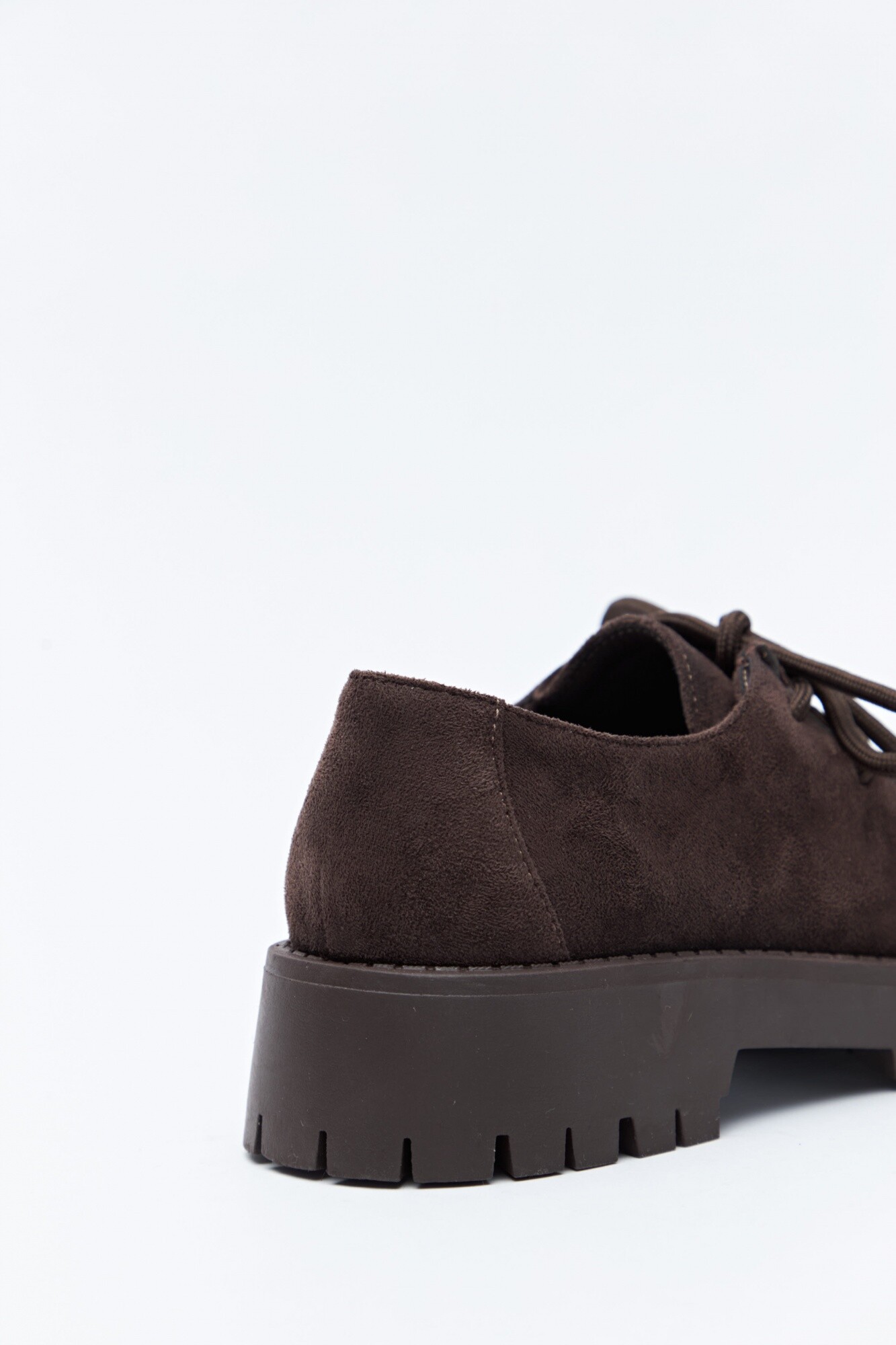 Zapatos de gamuza con cordones, un diseño de inspiración clásica reinterpretado con una estética contemporánea. Presentan puntera con costura marcada y una suela robusta con relieve que aporta carácter y estabilidad al caminar. Un modelo versátil que combina comodidad y estilo, ideal para acompañar distintos looks de temporada.
