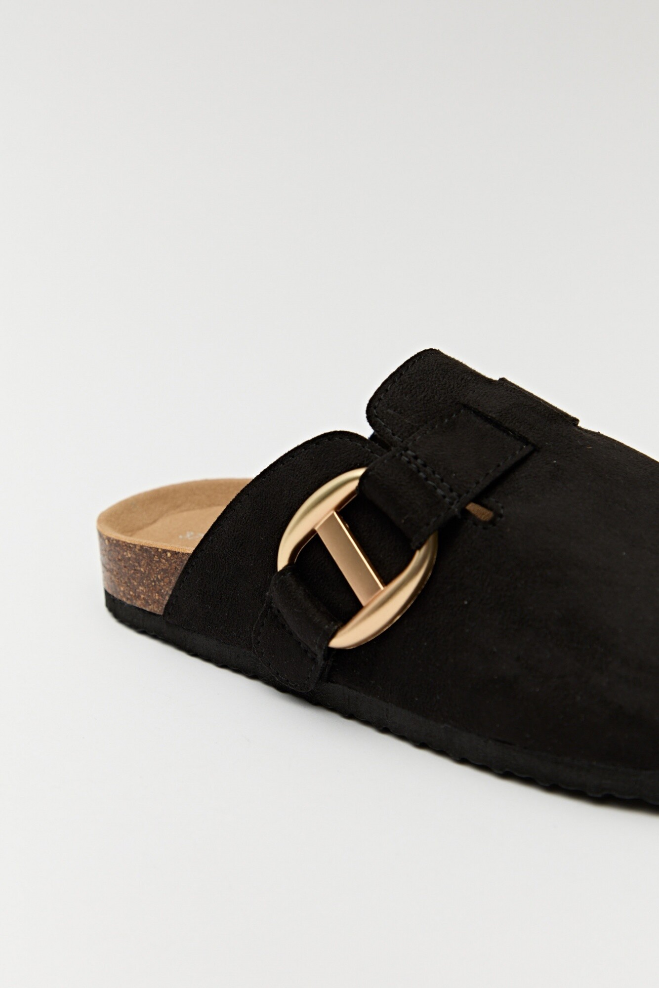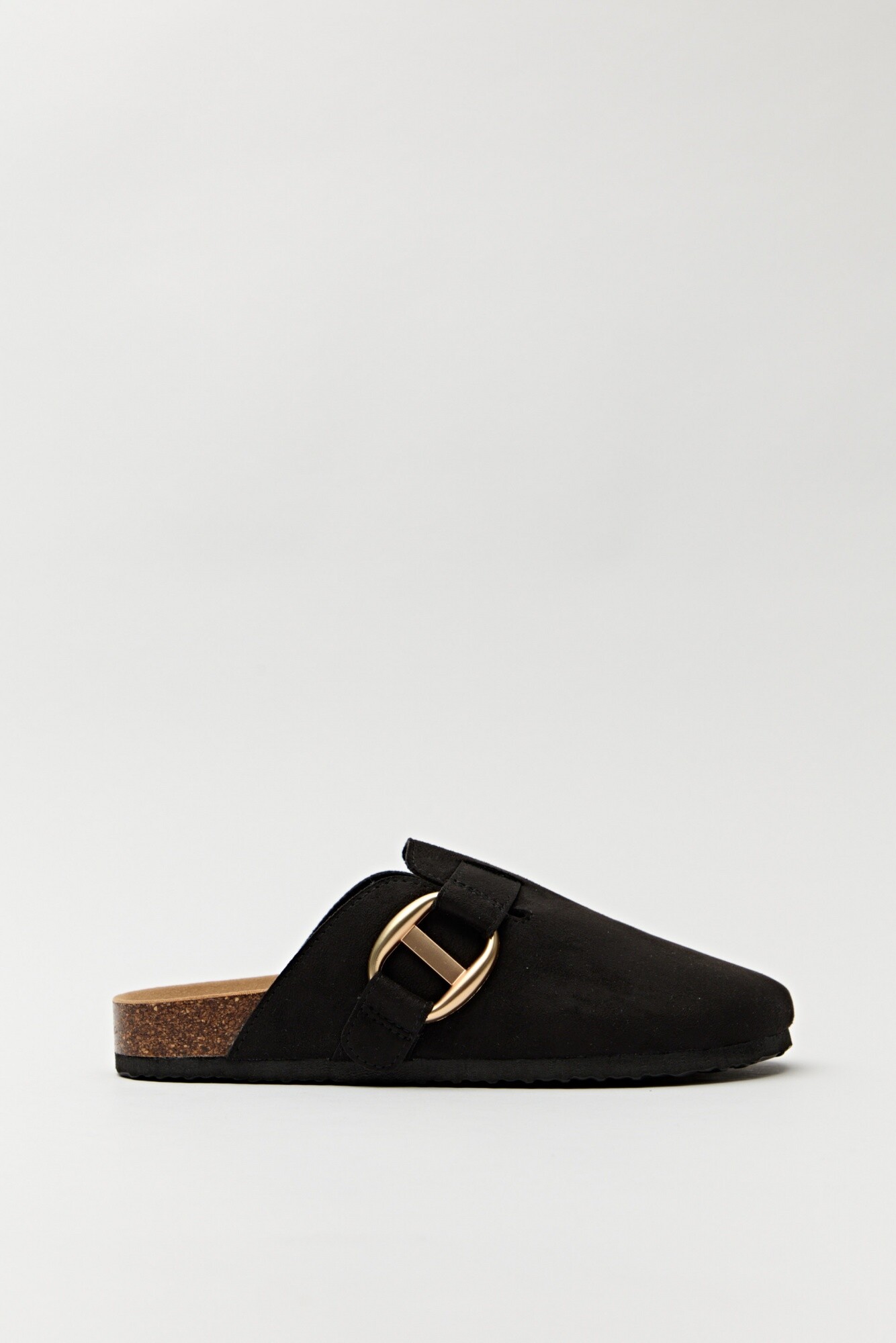 Zuecos trendy con una estética que combina comodidad y diseño. Su estructura cerrada en el empeine y la hebilla metálica lateral le dan un aire moderno y canchero, ideal para looks relajados pero con estilo. La base anatómica aporta confort para usarlos todo el día, convirtiéndolos en un infaltable de la temporada.