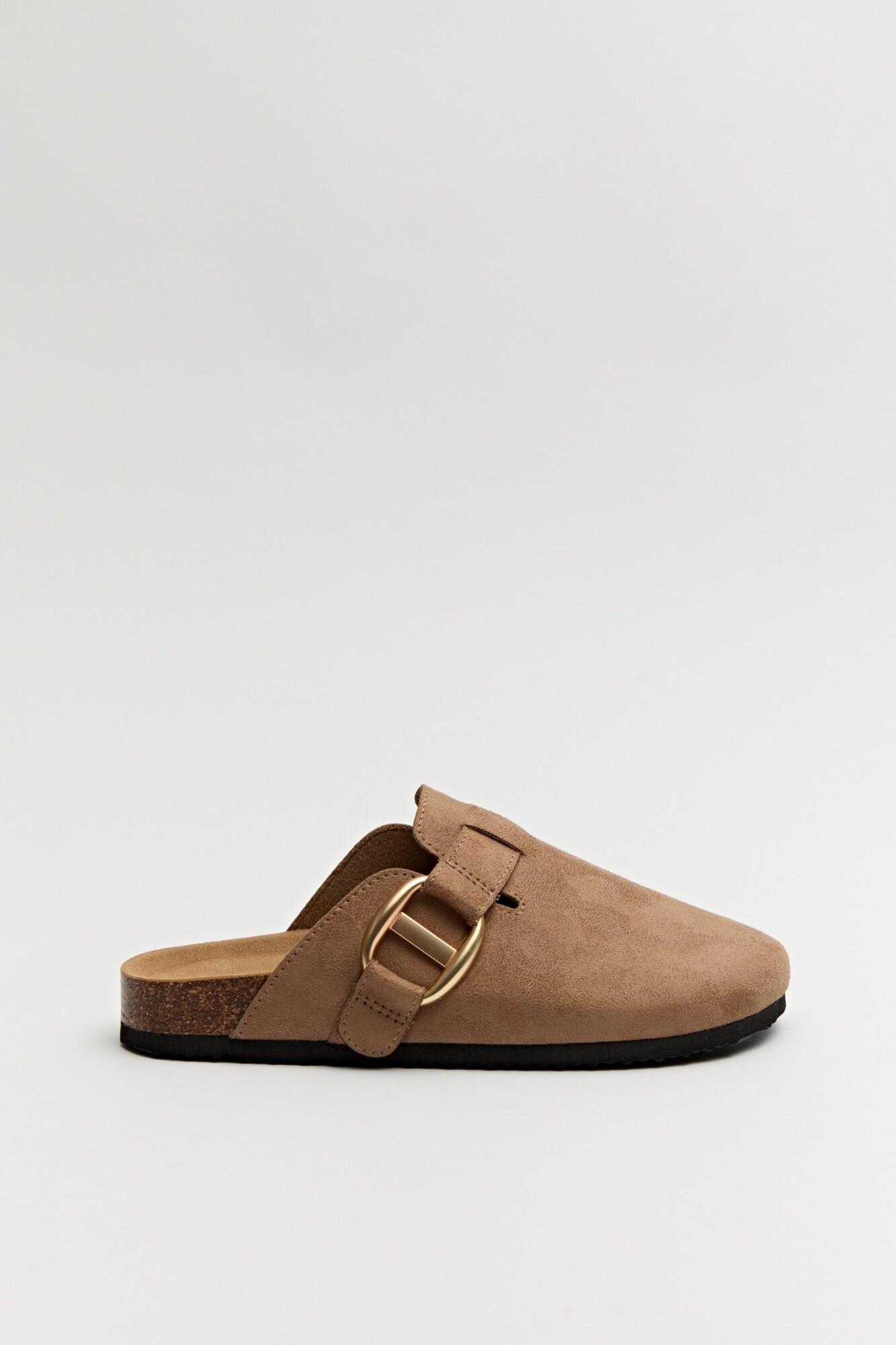 Zuecos trendy con una estética que combina comodidad y diseño. Su estructura cerrada en el empeine y la hebilla metálica lateral le dan un aire moderno y canchero, ideal para looks relajados pero con estilo. La base anatómica aporta confort para usarlos todo el día, convirtiéndolos en un infaltable de la temporada.